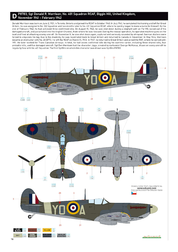 - Mk.Vb, P8783/YO-A, 401. Squadron der RCAF, Sgt. Donald R. Morrison, RAF Biggin Hill, Großbritannien, November 1941 bis Februar 1942;