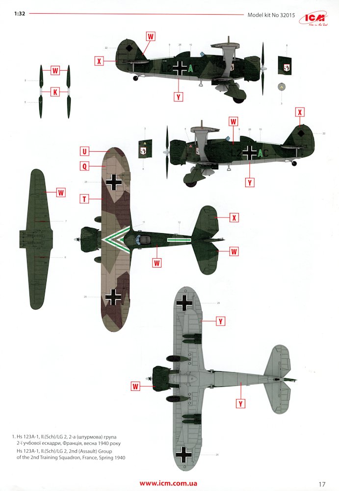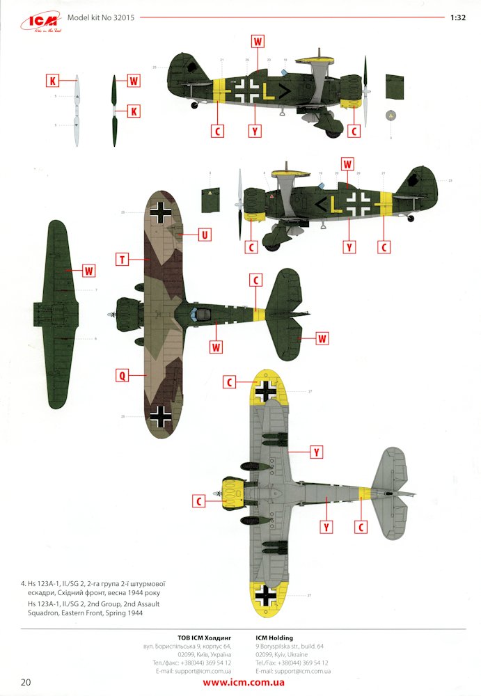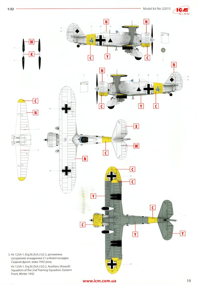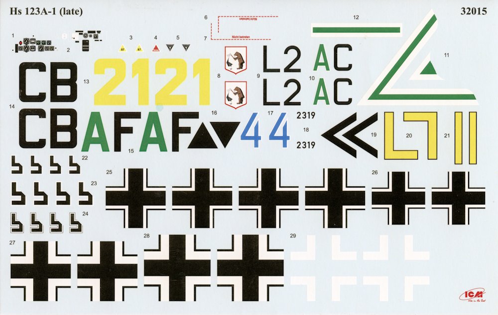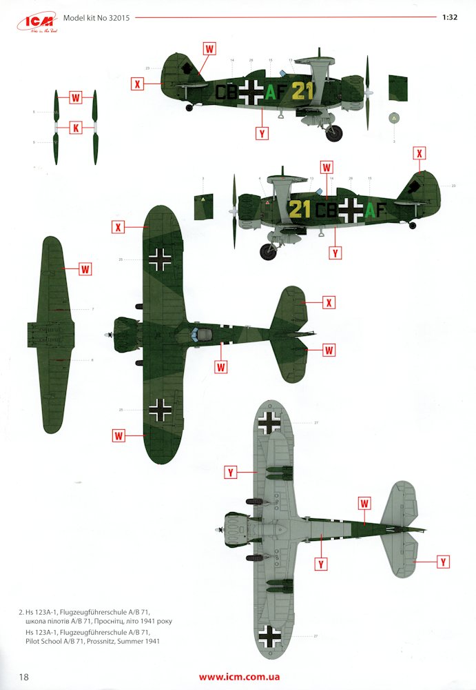 Anleitung/Bemalung: Die klar gegliederte Anleitung besticht durch übersichtliche, große Zeichnungen. Es gibt Vierseitenansichten für vier verschiedene Maschinen. Das Tragflächentarnschema für L2+AC und <L+ – sollte überprüft werden. Mir erscheint es spekulativ.