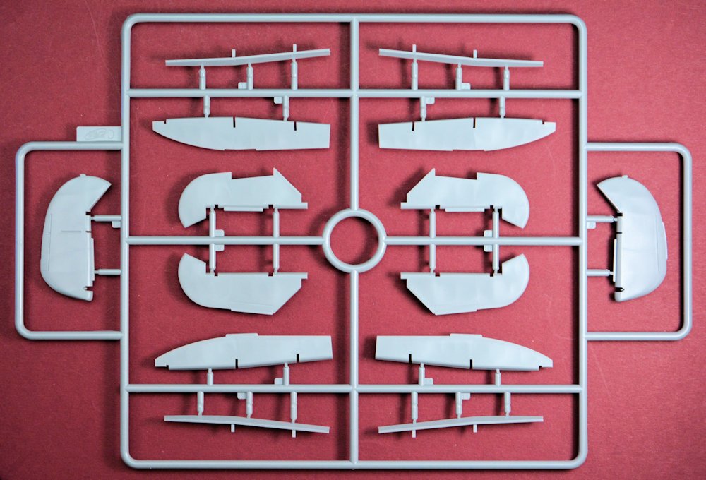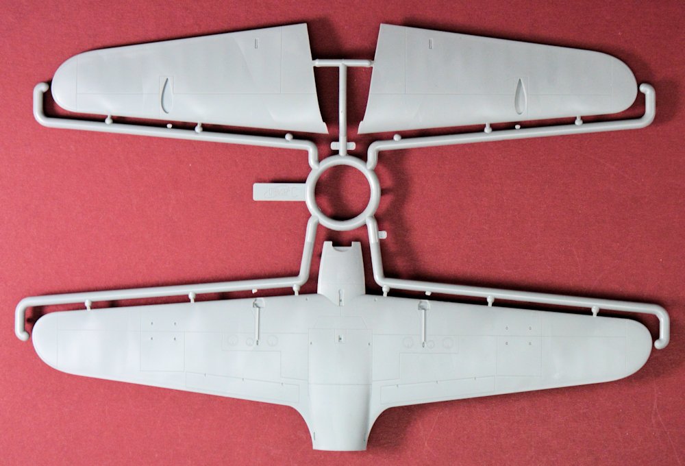 Die Rippenstruktur der beim Original mit Stoff bespannten Partien ist vorbildgerecht dezent umgesetzt. Fast alle Ruderflächen (Seiten-, Quer- und Höhenruder) liegen als separate Bauteile bei, so dass sie in dynamischen Stellungen angebracht werden können. Die Landeklappen sind fest dargestellt.