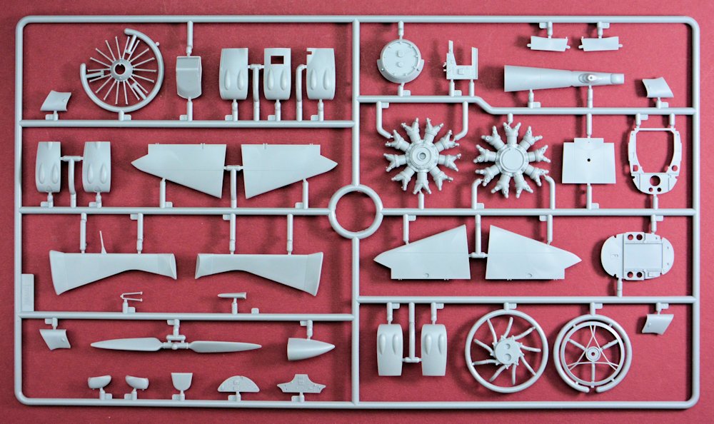 Ein Pluspunkt ist der sehr gut detaillierte BMW 132A-Motor. Die Kühlerrippen sind akzeptabel. Dafür erscheinen mir die 18 Beulen auf der Motorringhaube etwas zu flach geraten. Ebenso der Propeller: die Blätter sind an der Wurzel zu schmal und in der Form nicht korrekt ausgeführt. Dafür ist das Fahrwerk mit und ohne Abdeckung darstellbar. Alle Räder liegen in der Norm.