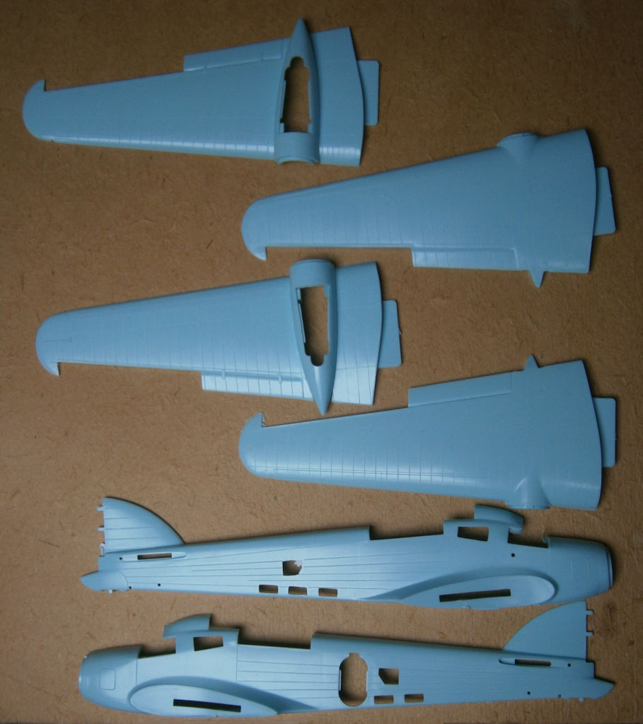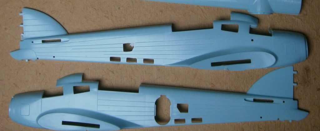 Aufgrund der Gemischtbauweise wurden diesmal die Oberflächen der Zelle, völlig korrekt, nicht von Nietreihen, sondern nur von feinen Panellines überzogen. Sie haben, meiner Meinung nach, genau die notwendige Höhe, um auch nach der Lackierung mit dem Pinsel noch leicht hervorzuragen. Wer jedoch mit der Airbrush arbeitet, sollte sie eventuell ein ganz klein wenig tiefer schleifen. Italeris Rumpf-Oberfläche hingegen wäre anstatt von dünnen Linien fast schon eher von kleinen Wülsten gebildet. Die „Änderung“ auf Airfix’ Tragflächen hingegen wäre aber dann allerdings so umfangreich, dass bereits eine eher unnatürlich wirkende Textur entsteht. Es überwiegt hier, zumindest für meinen Geschmack, nämlich leider der Eindruck eines gar zu gleichmäßigen, monotonen, Rasters. Der Firma aus der Nähe von Bologna gelang dies später schon weit besser. Obgleich es bei Airfix, trotz allem, aber zumindest immerhin auch noch ein paar Tankdeckel etc. an den Oberseiten der Tragflächen gibt.