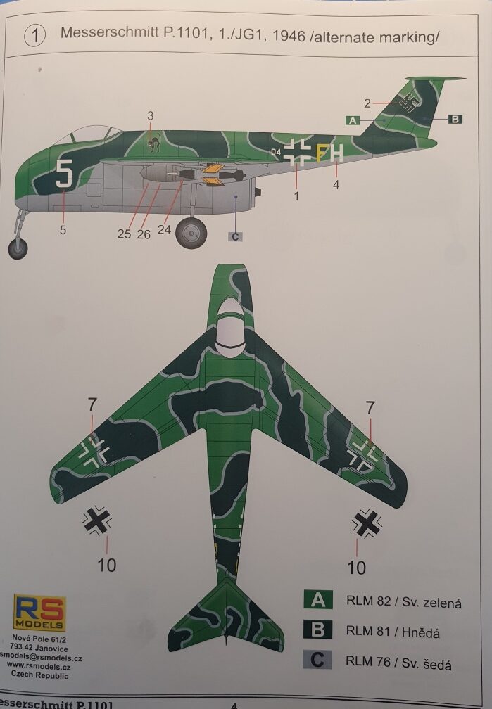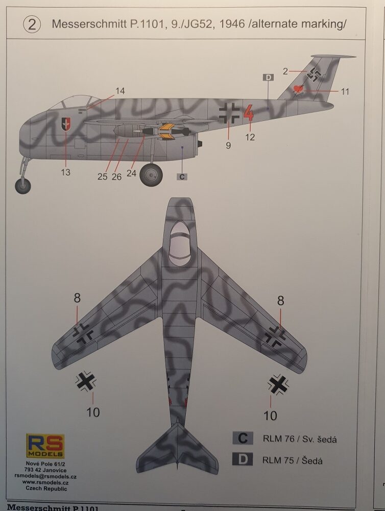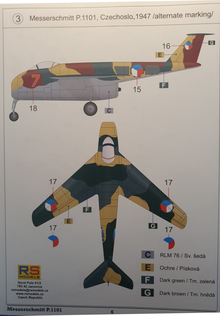 3: Messerschmitt P.1101, Czechoslo, 1947 in wellenförmigem Tarnmuster Sand/hellgrün/dunkelgrün über RLM 76;