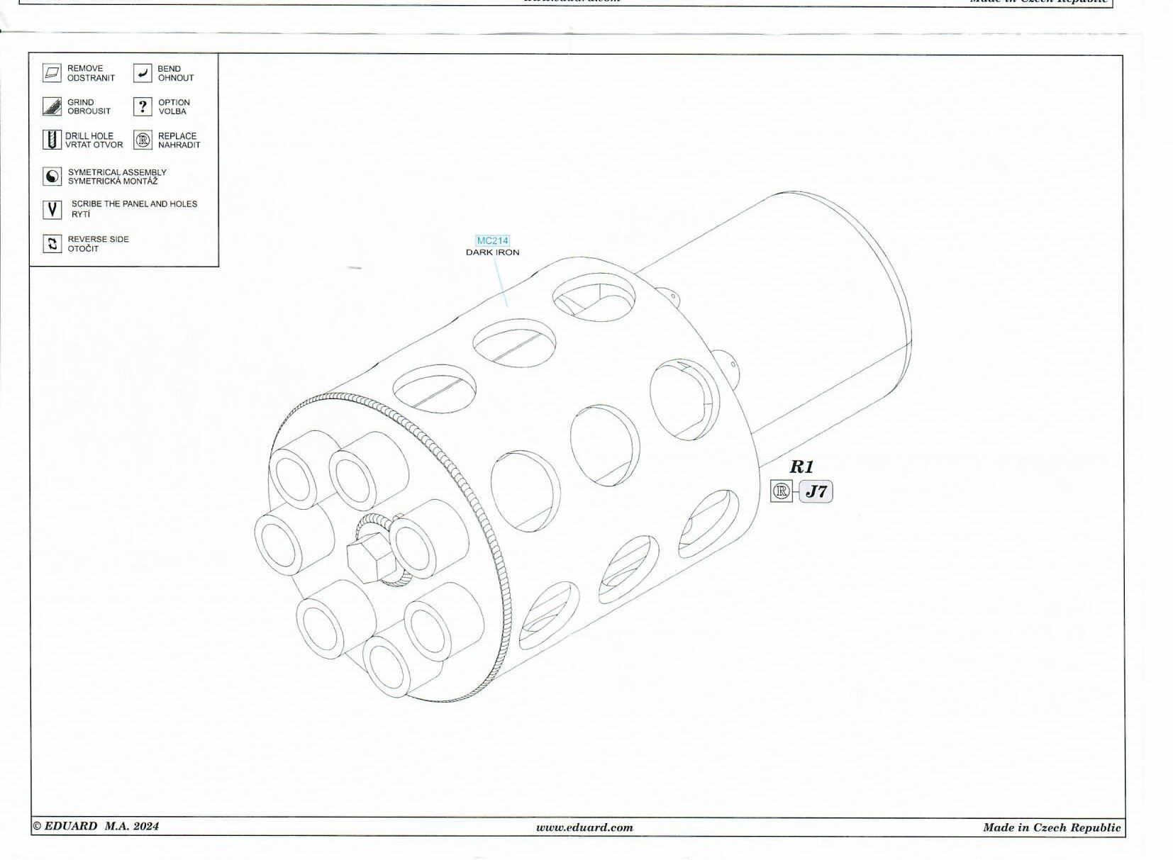 Dieses Teil von Eduard ersetzt das Spritzgussteil des Bausatzes direkt. Die Qualität des 3D-Verfahrens zeigt hier ihre Stärke und ist allen konkurrierenden Vergleichsmustern im Resin-Guss-Verfahren oder auch gedrehten Messingbauteilen überlegen. Es dürfte keine Schwierigkeit geben, dieses Bauteil auch an Kits anderer Hersteller zu verwenden.