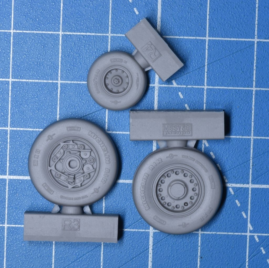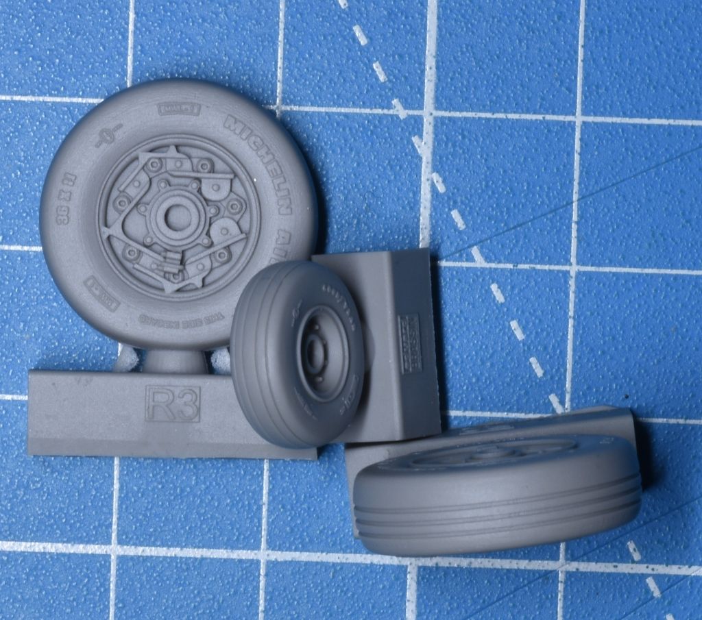 Eduard bietet Fahrwerksräder einschließlich Lackiermasken an. Die Bauteile sind sauber abgegossen und weisen sehr gute Details an der Oberfläche auf.