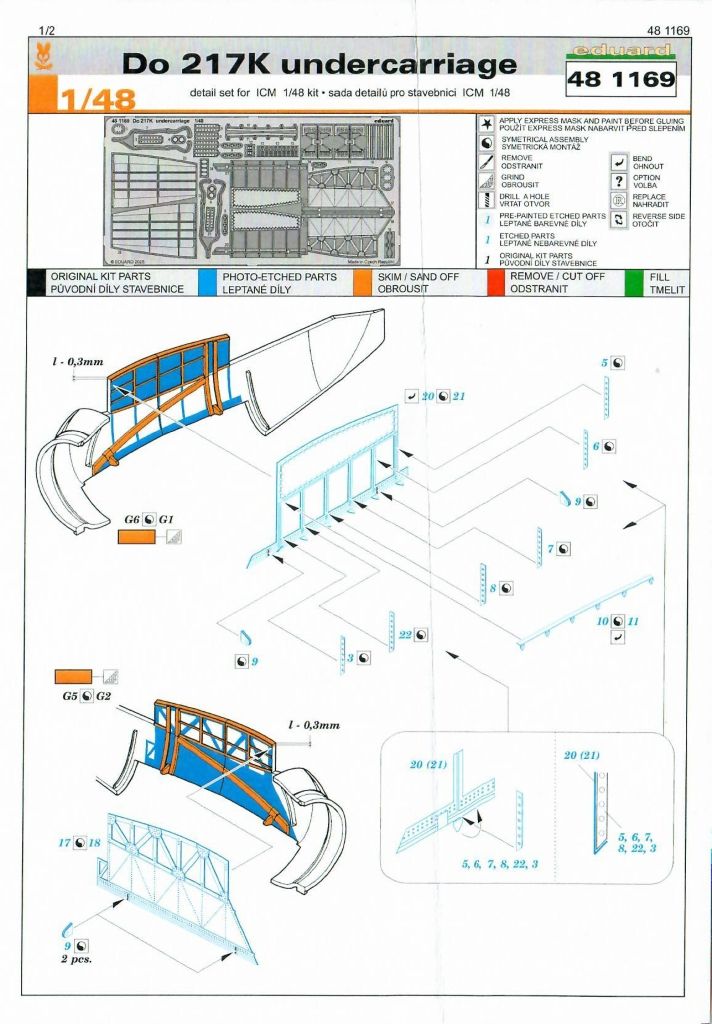 Bisher hat der ukrainische Hersteller ICM vier Varianten der Flugzeug Baureihe Dornier Do 217 herausgebracht. Zwei davon betreffen die Varianten „K“ und „M“, für die inzwischen eine ganze Reihe von Detaillierungssätzen aus verschiedenen Materialien vorliegen. Da sich diese beiden Varianten nur hinsichtlich der Motorisierung unterschieden (zumindest im Modell), können im Modellbausektor z.B. die Sitzgurte, Abklebemasken und eine ganze Reihe von Innendetails unabhängig von der Zuweisung „K“ oder „M“ verwendet werden. Bei den Gerätebrettern ist allerdings eine abweichende Auslegung zu beachten, da die „M“ mit ihren flüssigkeitsgekühlten Triebwerken weitere Überwachungsanzeigen hatte.