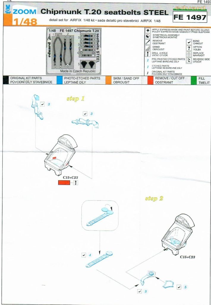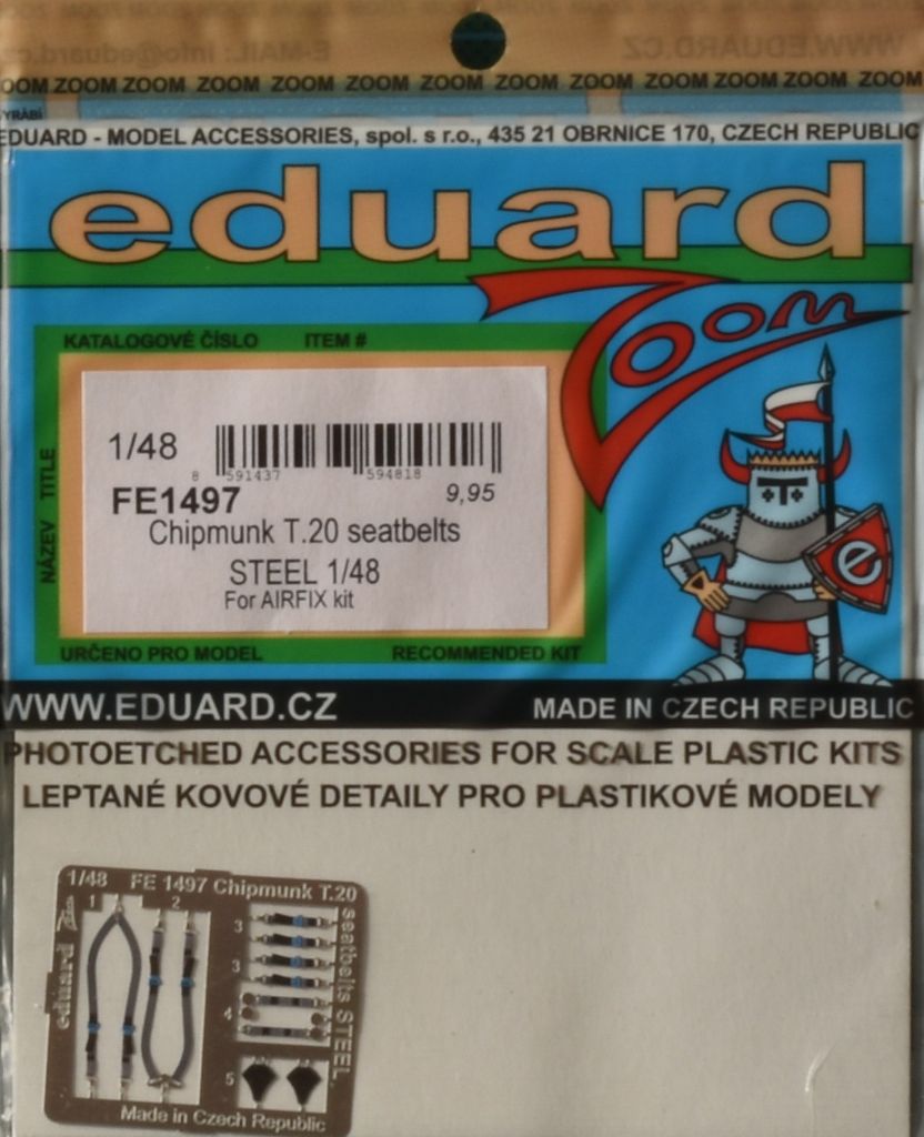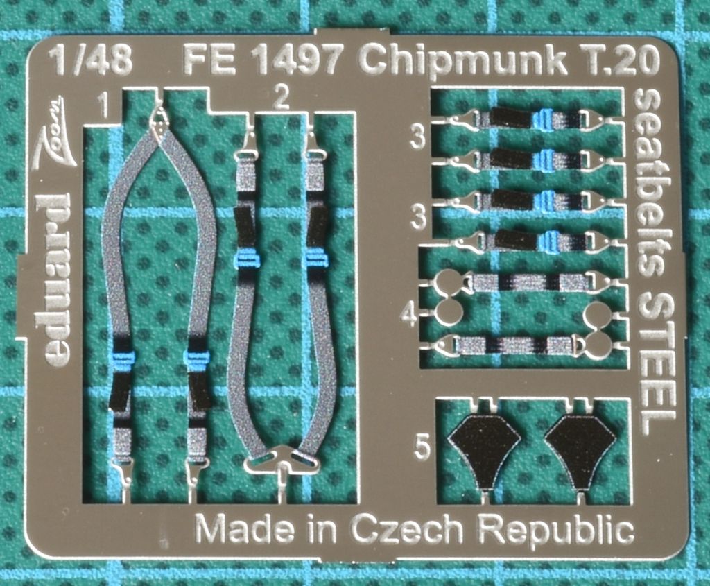 In diesem Detailsatz von Eduard befindet sich eine klassische farbig bedruckte Photoätzplatine für die Sitzgurte. Für die Verarbeitung empfehlen wir Weißleim.