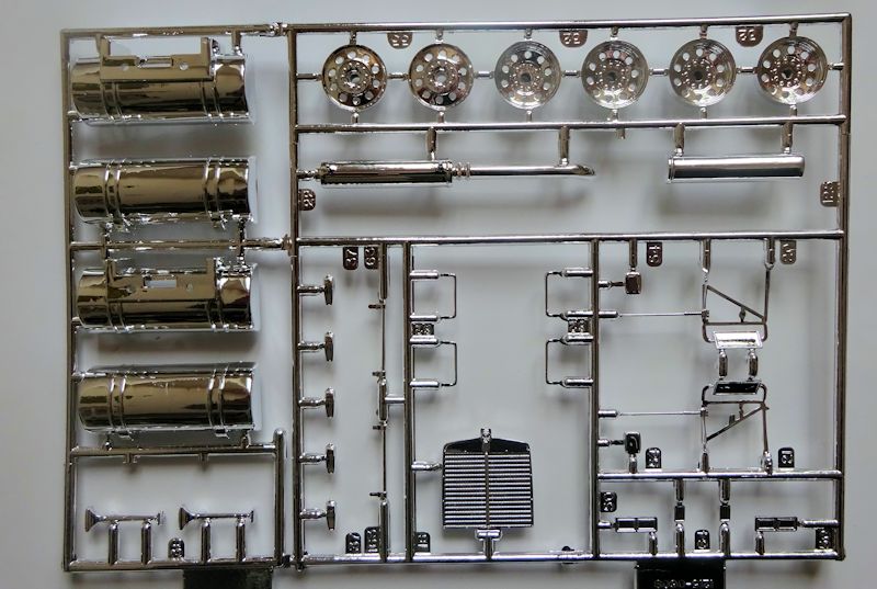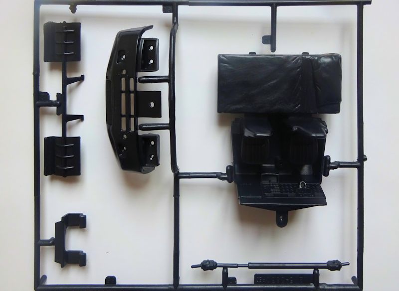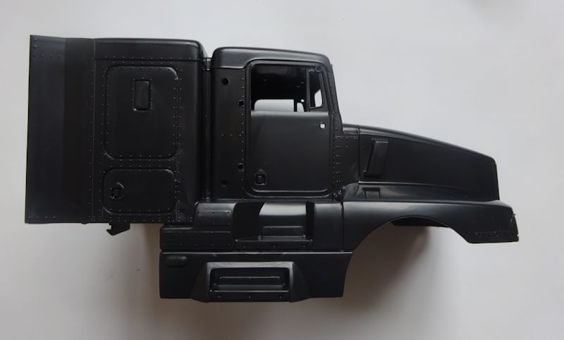 Die Kabine ist einteilig und verfügt über eine gute Inneneinrichtung. Die Felgen und Außenspiegel sind verchromt. Die Frontscheibe könnten besser sein und die Scheibenwischer sind bereits angegossen. Seitenscheiben liegen dem Bausatz keine bei.