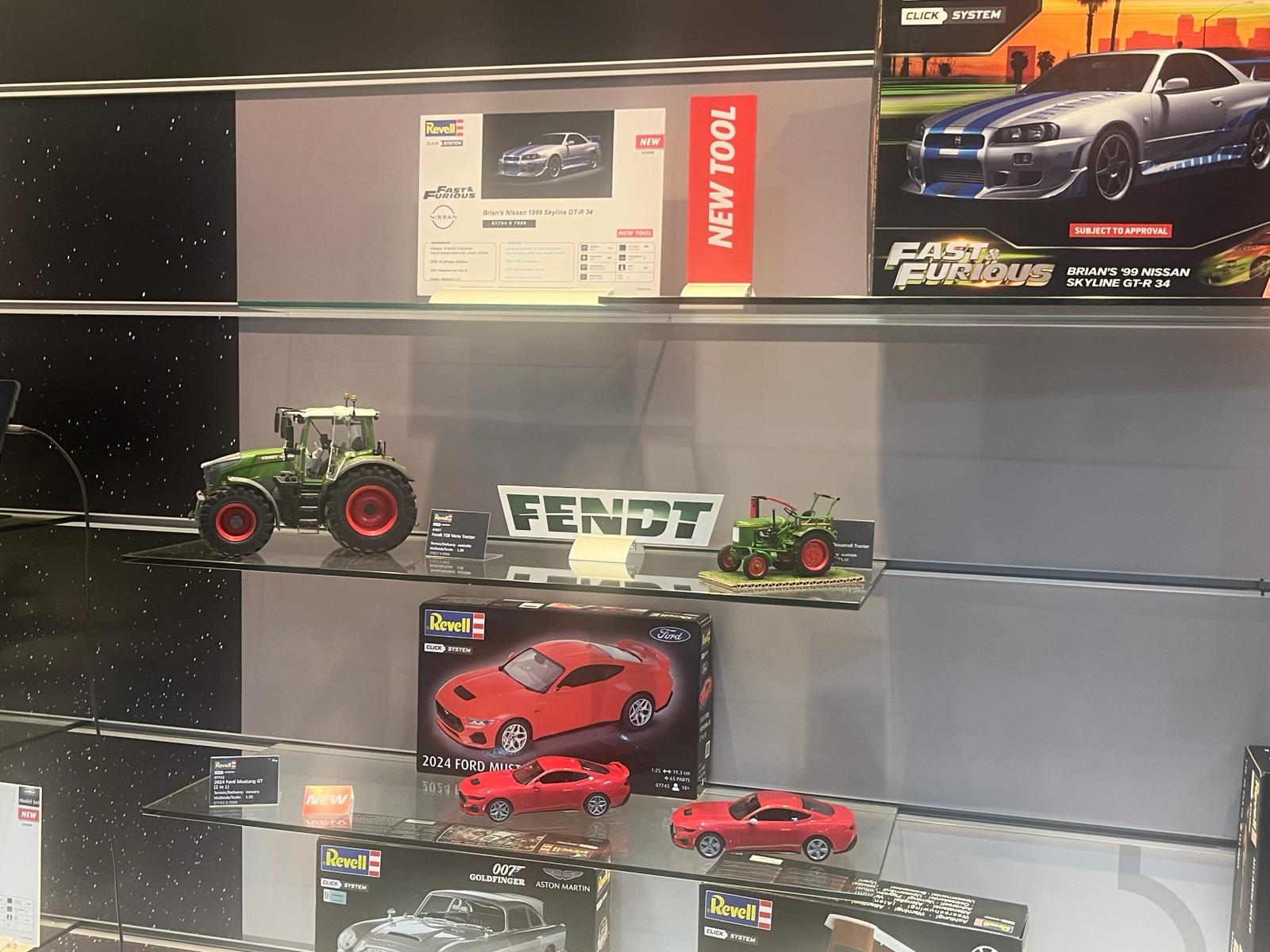 Revell (übrigens traditionell in Halle 12) stellt sich bei den Themen deutlich breiter auf. Hier verlässt man sich nicht nur auf den normalen Maßstabsmodellbau sondern schaut auch mal nach links oder rechts. So findet man auch immer wieder spannende Lizenzthemen. Übrigens sind neben den Flugzeugen Autos „der Umsatzträger“ in Europa. Man führt auch einen neuen Maßstab 1/20 ein. Hier folgen nach dem Fendt auch Formel 1 – Fahrzeuge. Ansonsten gibt es im 75. Jahr von Revell auch diverse alte Bausätze aus der Vergangenheit.