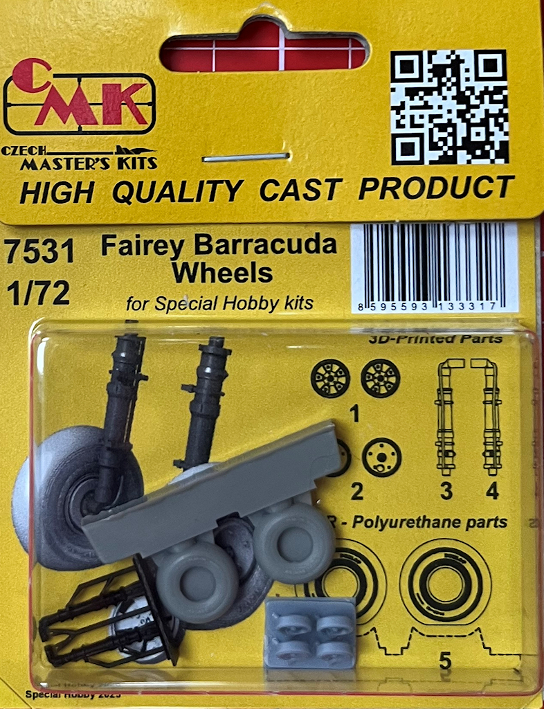 Für die verschiedenen Bausätze der Fairey Barracuda von Special Hobby in 1/72 hat nach deren Wiederauflage der Hersteller unter dem Label CMK ein Räderset herausgebracht.