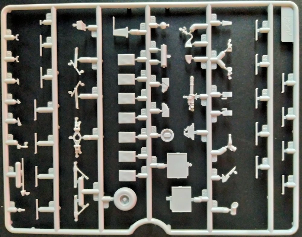 Der Decalbogen stammt von ICM selber, ist auf einem hellblauen Papier gedruckt und enthält 59 Schiebebilder, von denen aber etliche doppelt und auch mehrfach vorhanden sind. Man wird es daher eher mit ca. 80 Decals zu tun haben. Der Druck ist glänzend mit wenig Trägerfilm zum Wegschneiden. Gut: es gibt auch sieben Instrumentendecals für die Armaturentafeln.