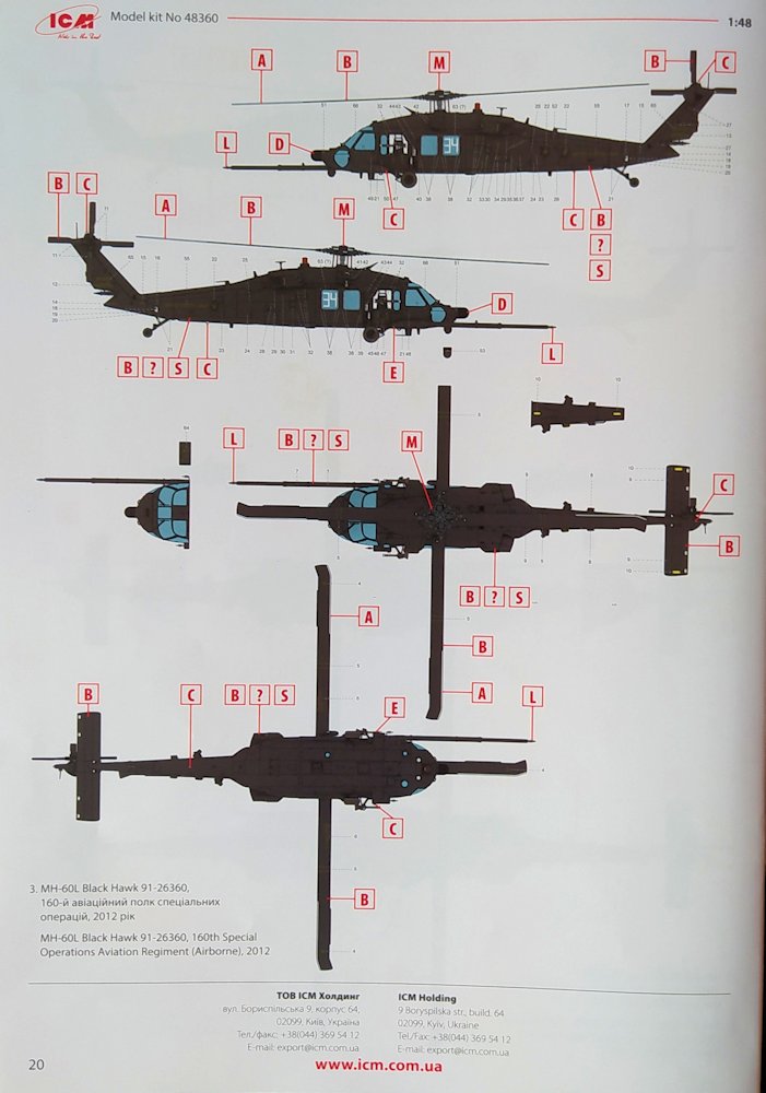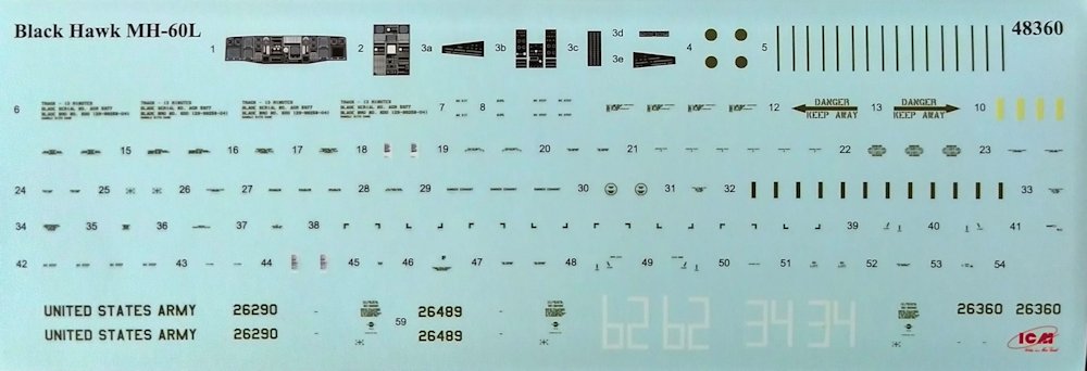 Fazit: Gesamtbeurteilung: sehr empfehlenswert. Kritik könnte man höchstens an der Auswahl dieses speziellen Untertypes MH-60L üben. Von diesem wurden nur 37 Stück hergestellt, die allesamt an die oben erwähnte 160th Special Operations Aviations Regiment gingen. Zehn dieser Maschinen wurden bis 2003 mit einer Luftbetankungssonde nachgerüstet, und drei davon kann man mit diesem Bausatz erstellen. Will man eine andere Maschine ohne die Sonde bauen, muss man die korrekte Baunummer selber recherchieren und ggfs. einen geeigneten Decalbogen dazu finden.