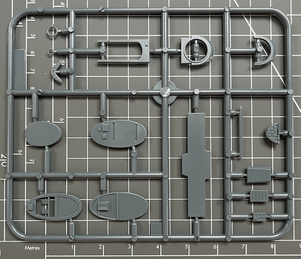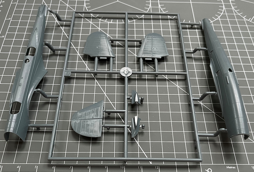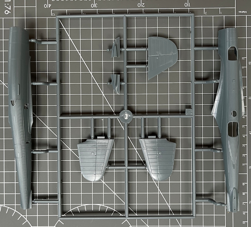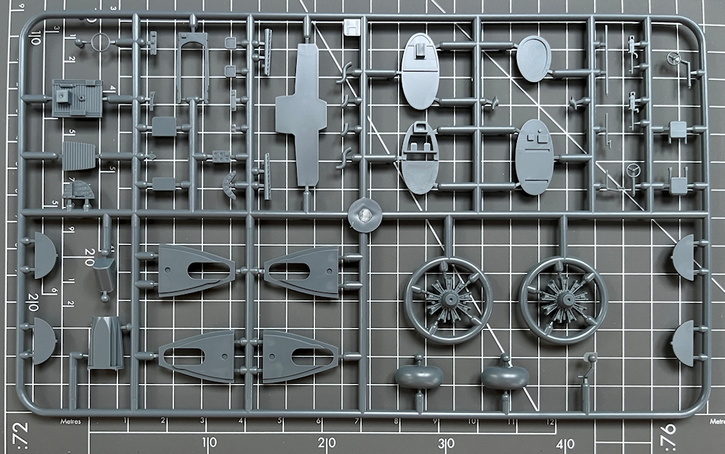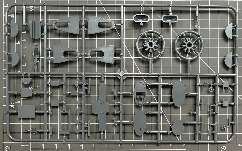 In dem attraktiven praktischen Stülpkarton befinden sich sehr gut verpackt vier graue Spritzlinge mit 105 Teilen, ein klarer Spritzling mit zwölf Teilen, ein Decalbogen und die mehrfarbige Bau- sowie Bemalungsanleitung. Ein paar Teile sind für andere Versionen und wandern in die bekannte Restekiste. Die Abspritzung der Teile ist sehr gut, und es ist kaum Nacharbeit nötig.