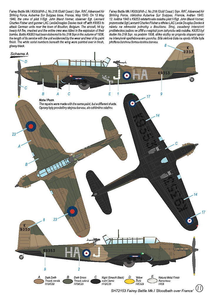 - Battle Mk.I, K9353/HA-J, 218. Squadron RAF, Frankreich 1940;