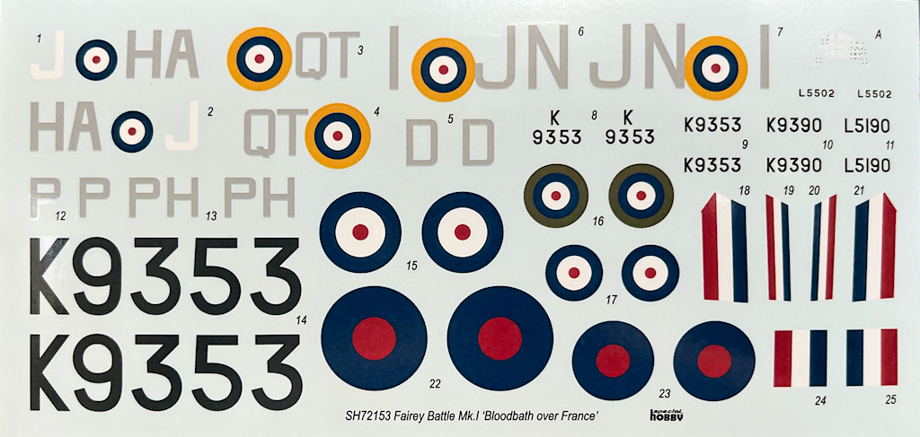 Bausatz: Ende 2024 war bei Azur FRROM die Zeit reif für eine neue Fairey Battle im Maßstab 1/72. In den 1960er Jahren erschien der Airfix-Bausatz und MPM aus Tschechien brachte Anfang der 2000er Jahre eine Reihe mit unterschiedlichen Versionen heraus. Nach Azur FRROM aus Frankreich lieferte Special Hobby eine eigene Decalvariante aus.