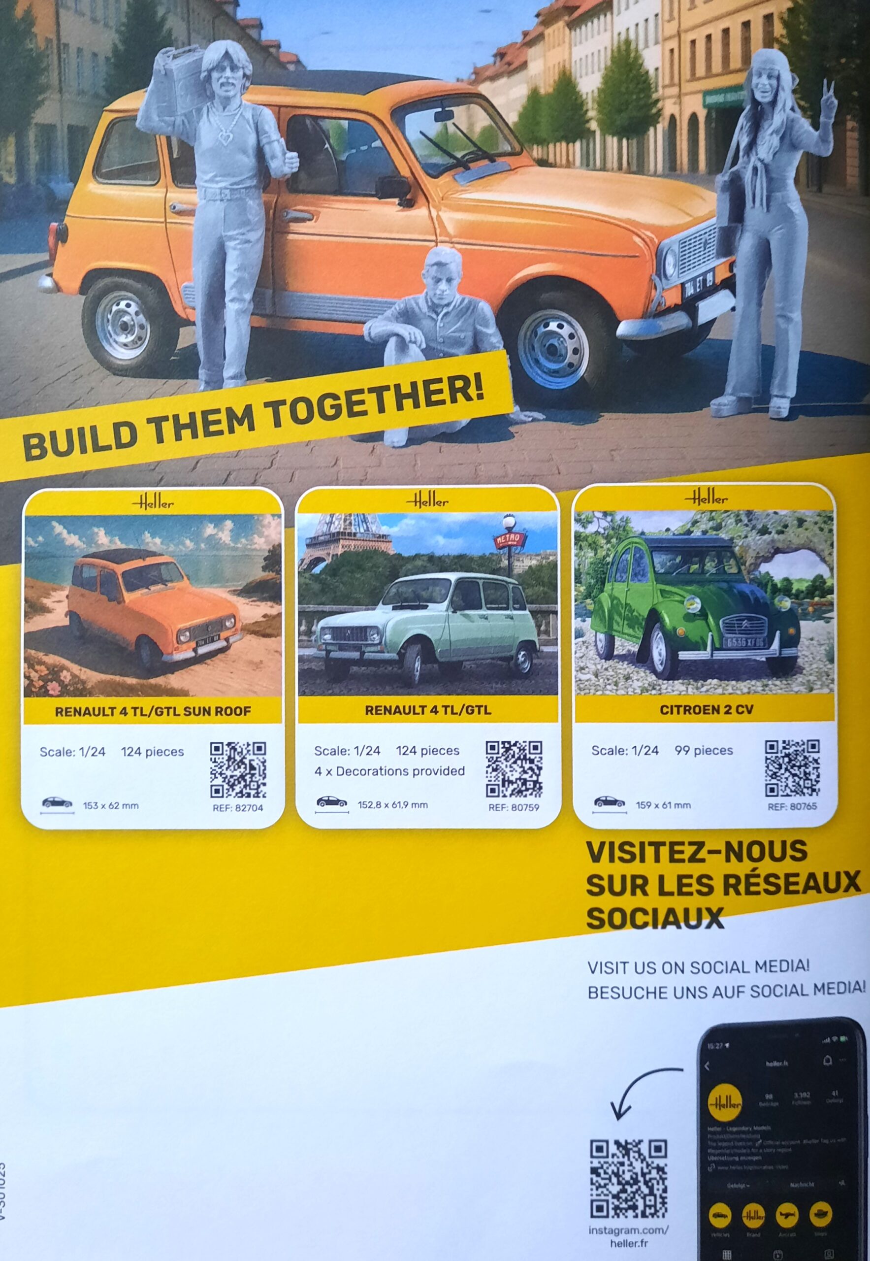 Fazit: Ein Figurentrio der zum Bau eines Dioramas verleitet um ein kultiges Fahrzeug, R4 oder Ente, in Szene zu setzen. Die passenden Fahrzeuge dazu findet man ebenfalls im Heller-Programm.