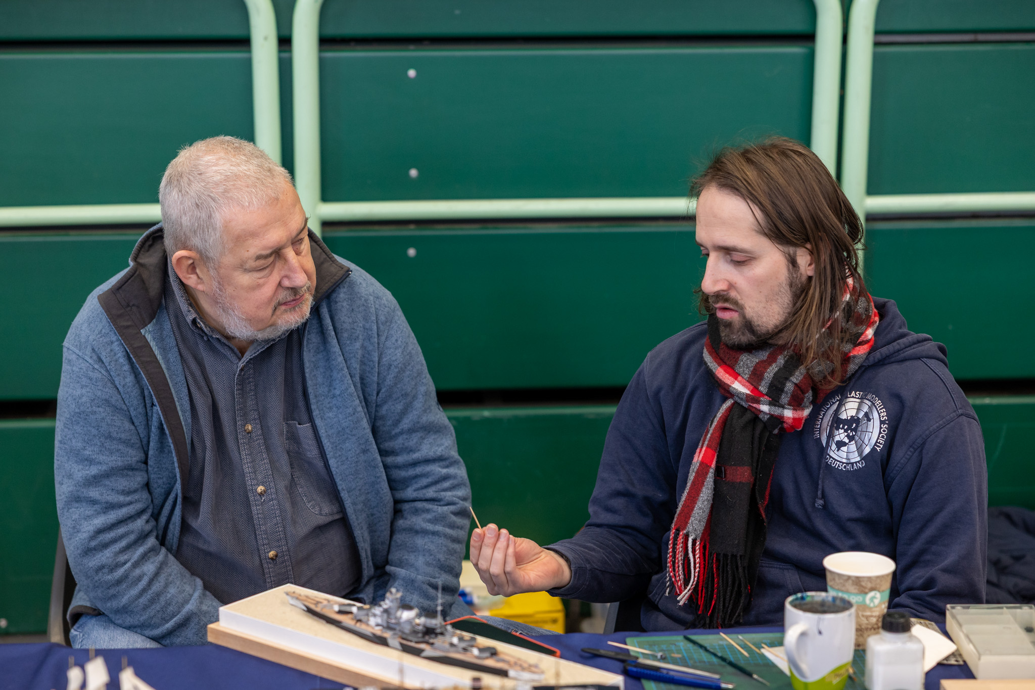 Die Ausstellung lieferte den üblichen Mix der verschiedenen Modellbausparten. Im Actionbereich starten die Eisbahn-, RC- und Dampfmaschinenfans. Unsere Sparte wurde durch drei Clubs vertreten. Neben den Kartonmodellen, gab es auch welche aus Holz und Metall zu sehen. Bei der Gelegenheit konnten wir die Schiffsmodelle unseres Hannoveraner Mitglieds Udo am Stand seines Heimatklubs besichtigen.
