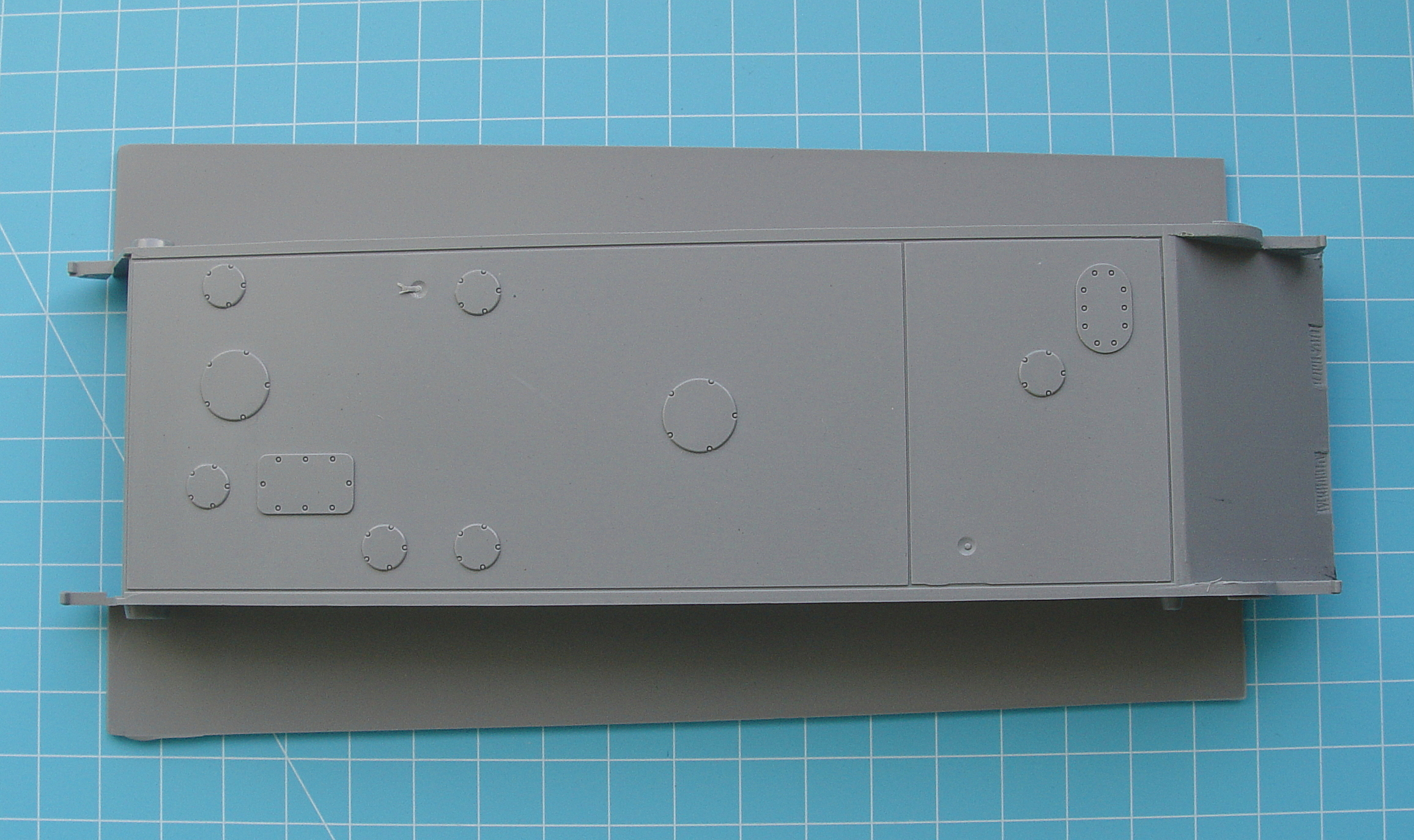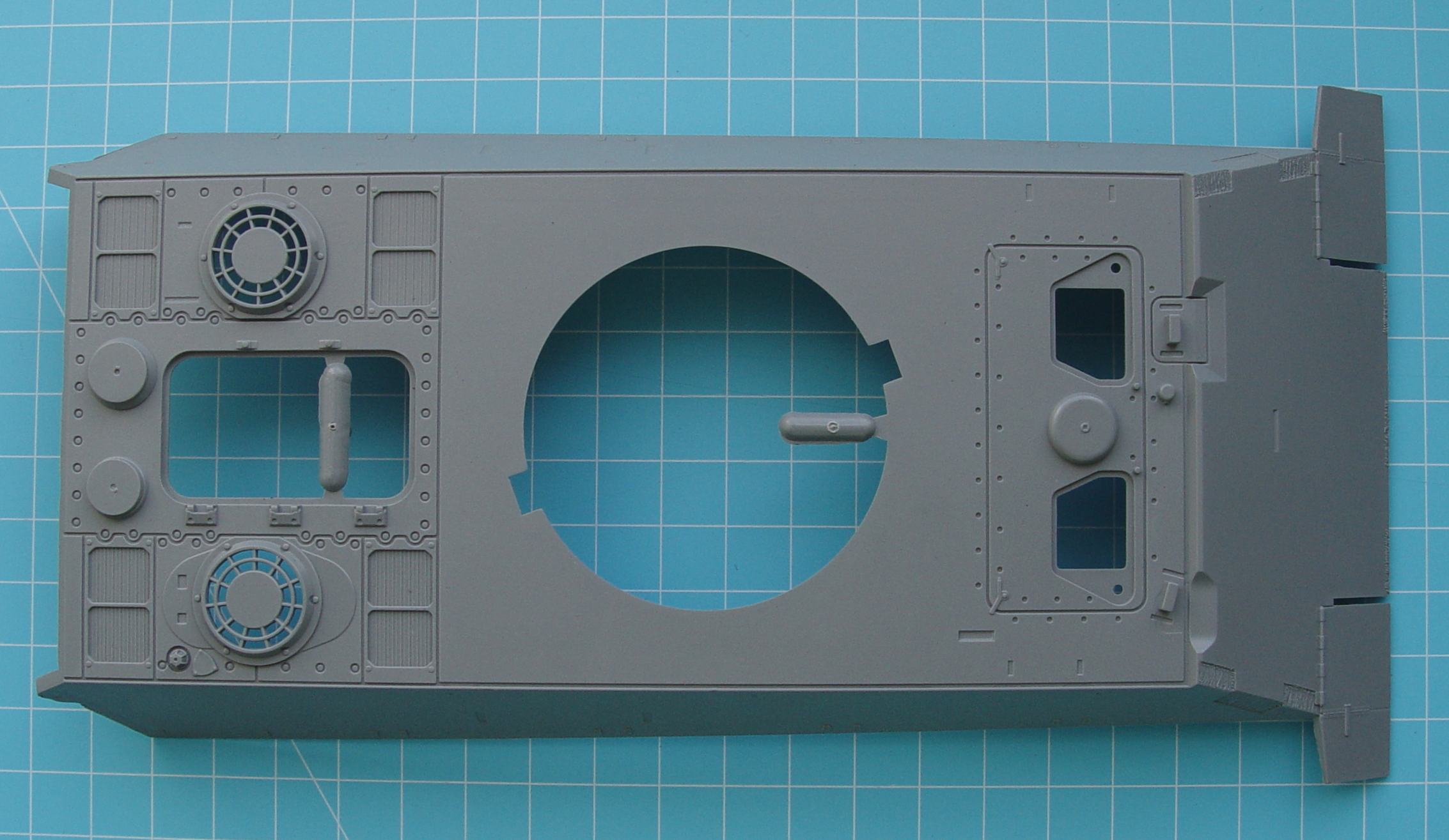 Der Bausatz enthält leider keinen Ätzteilbogen für die Lüfterabdeckung, aber die vom Tiger II passen auch, also kann man sich helfen und assende auf dem Zubehörmarkt besorgen.