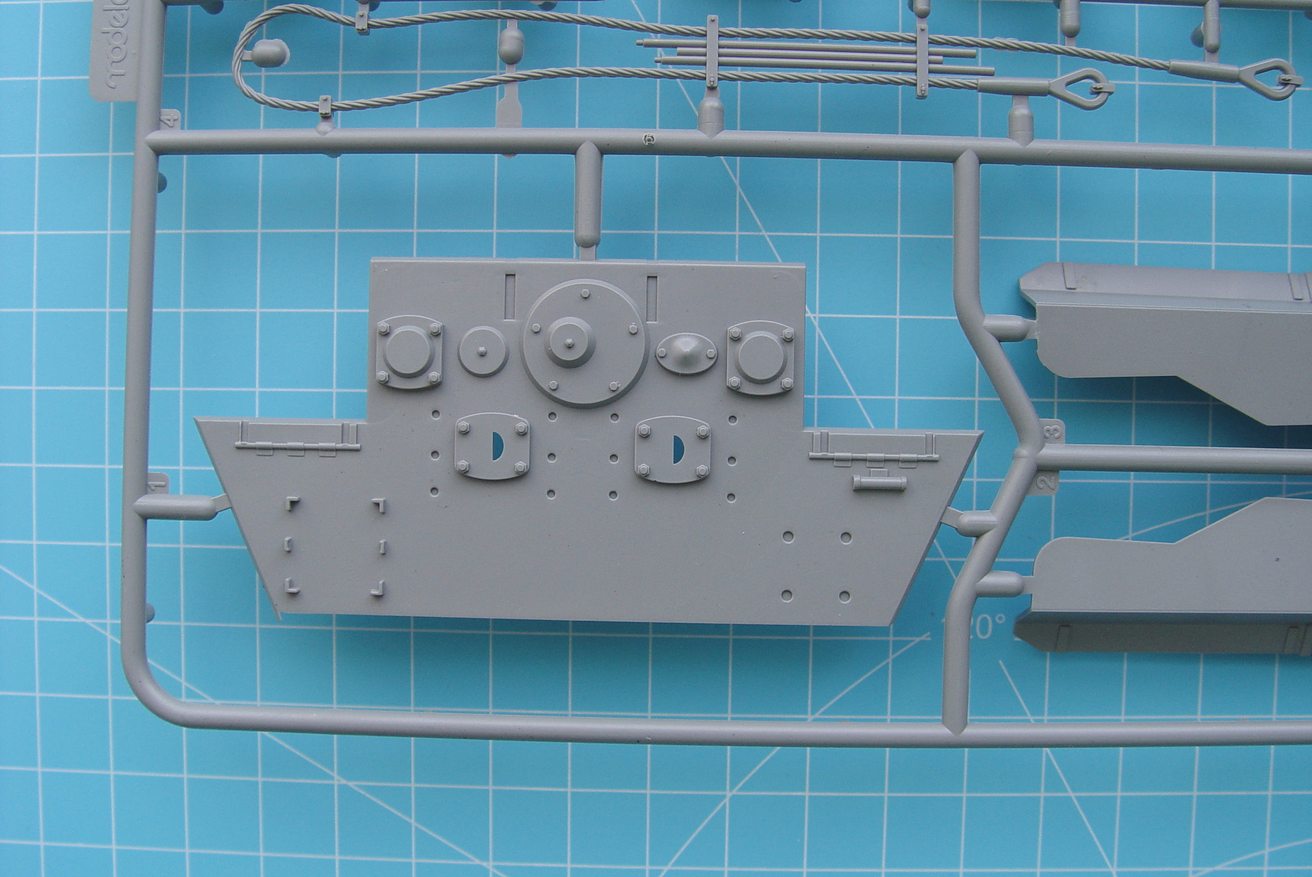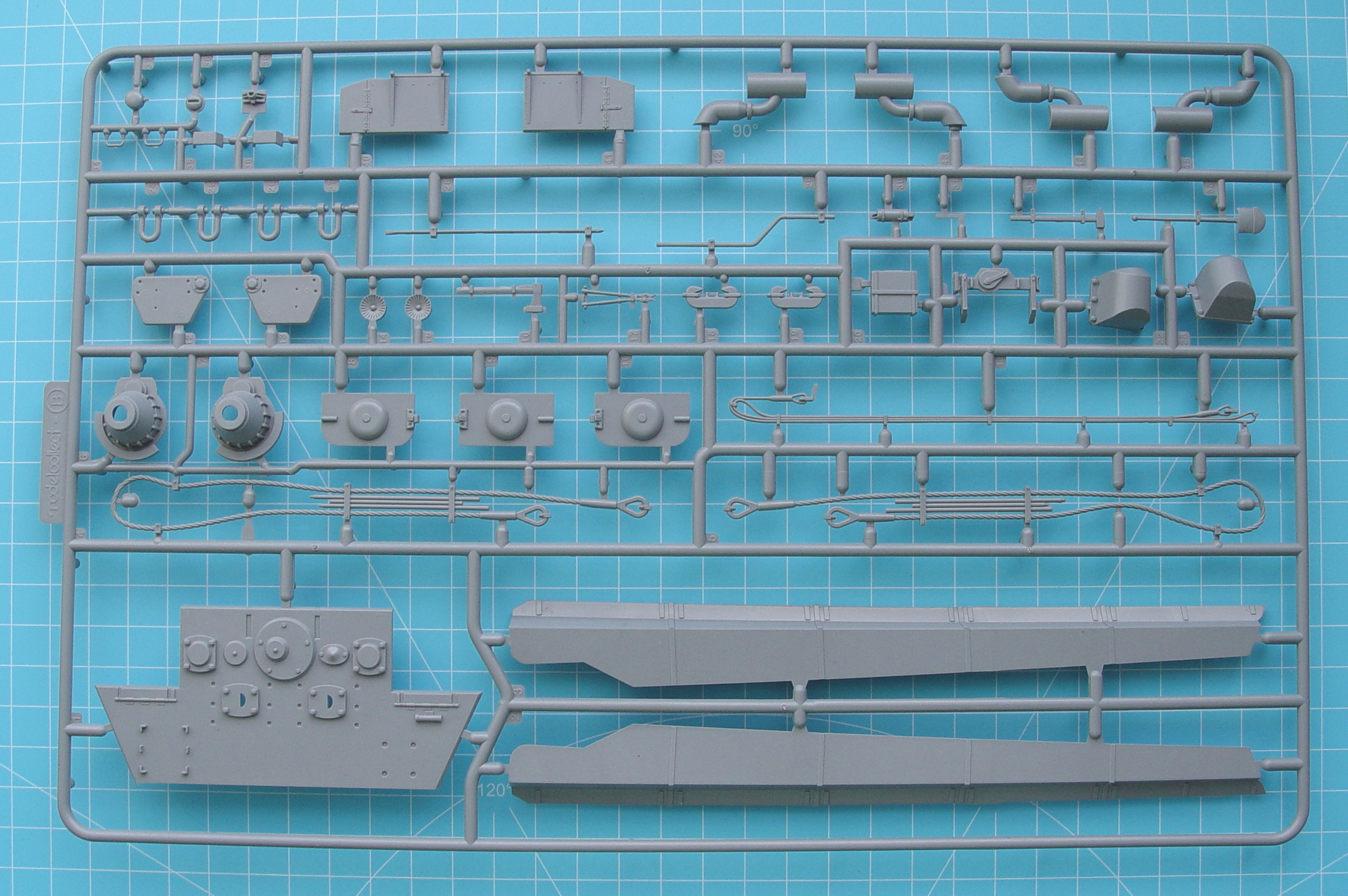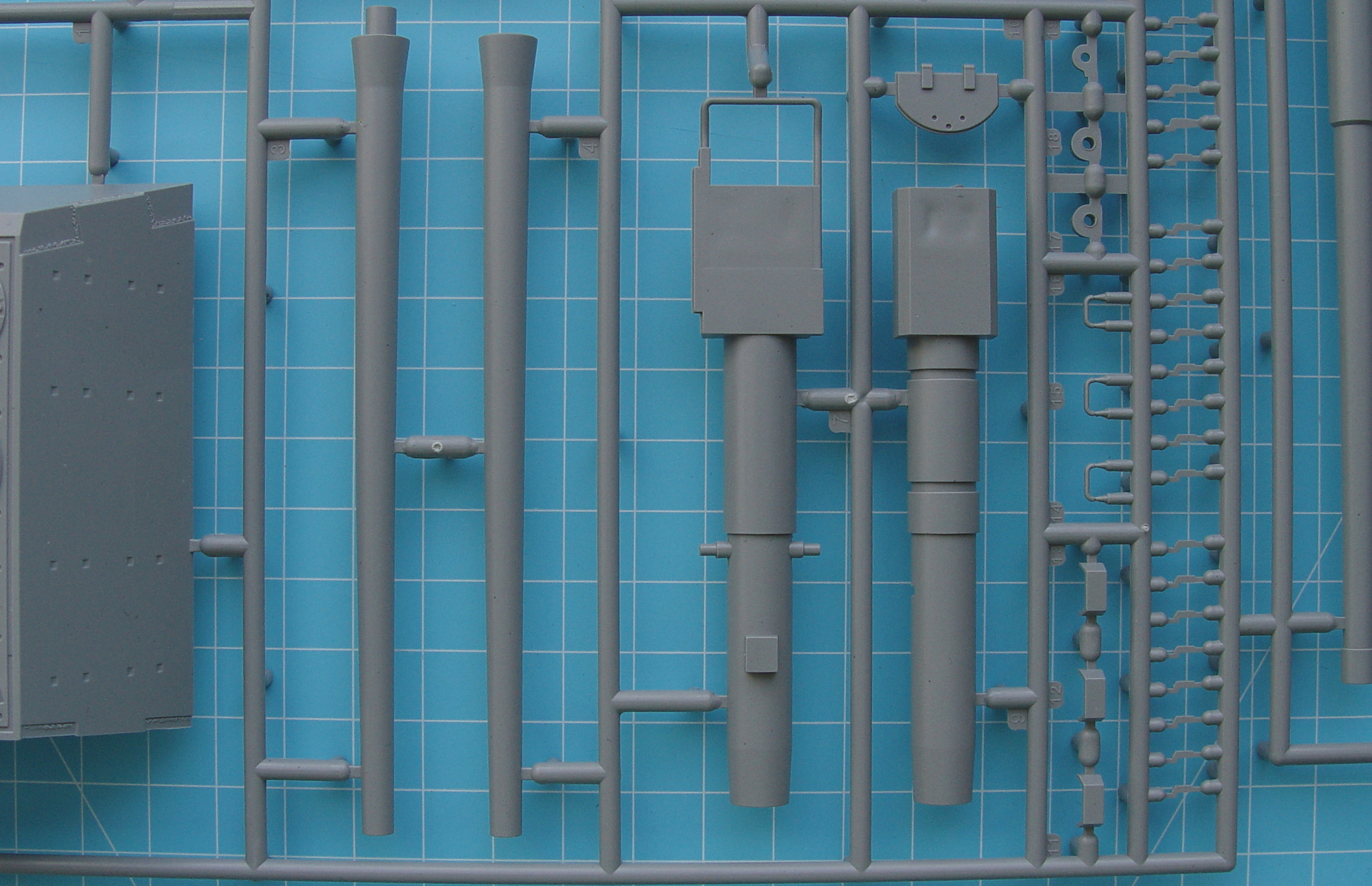 Enthalten sind sechs Spritzrahmen im A4 / A5 Format aus grauen Kunststoff. Die Unterwanne und das Oberteil sind verzugsfrei gestaltet, die Detaillierung ist einfach gehalten.