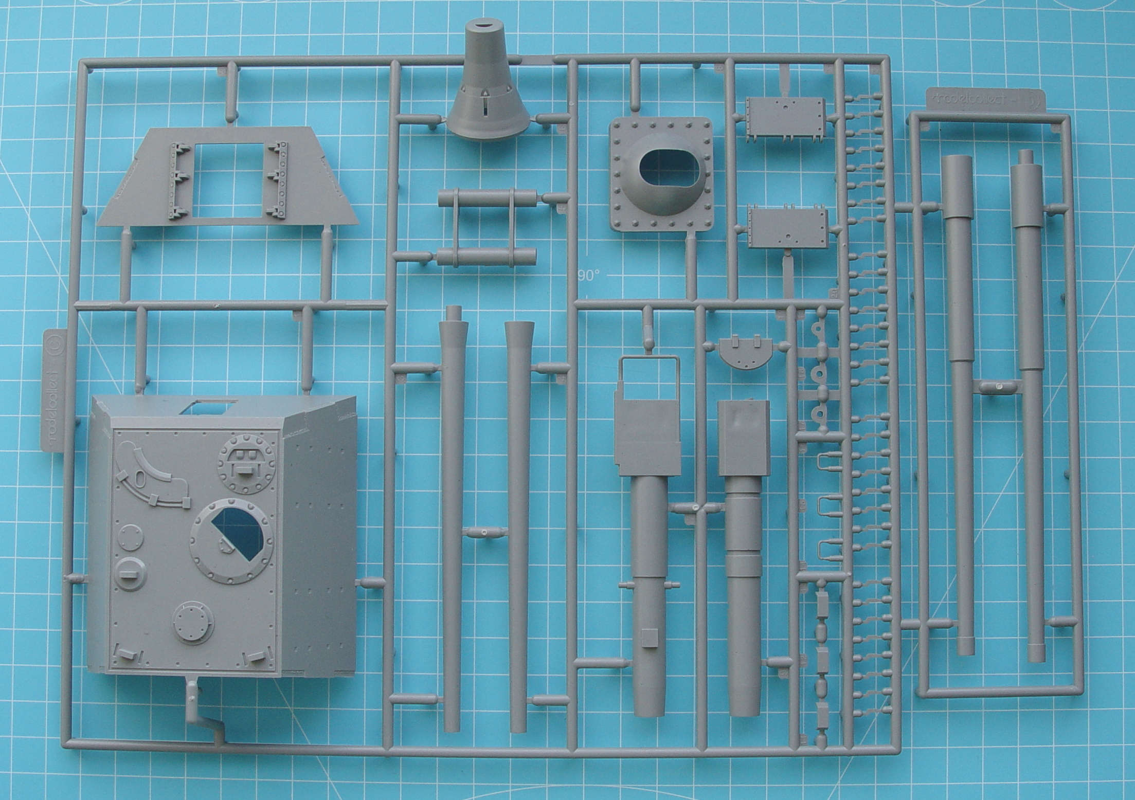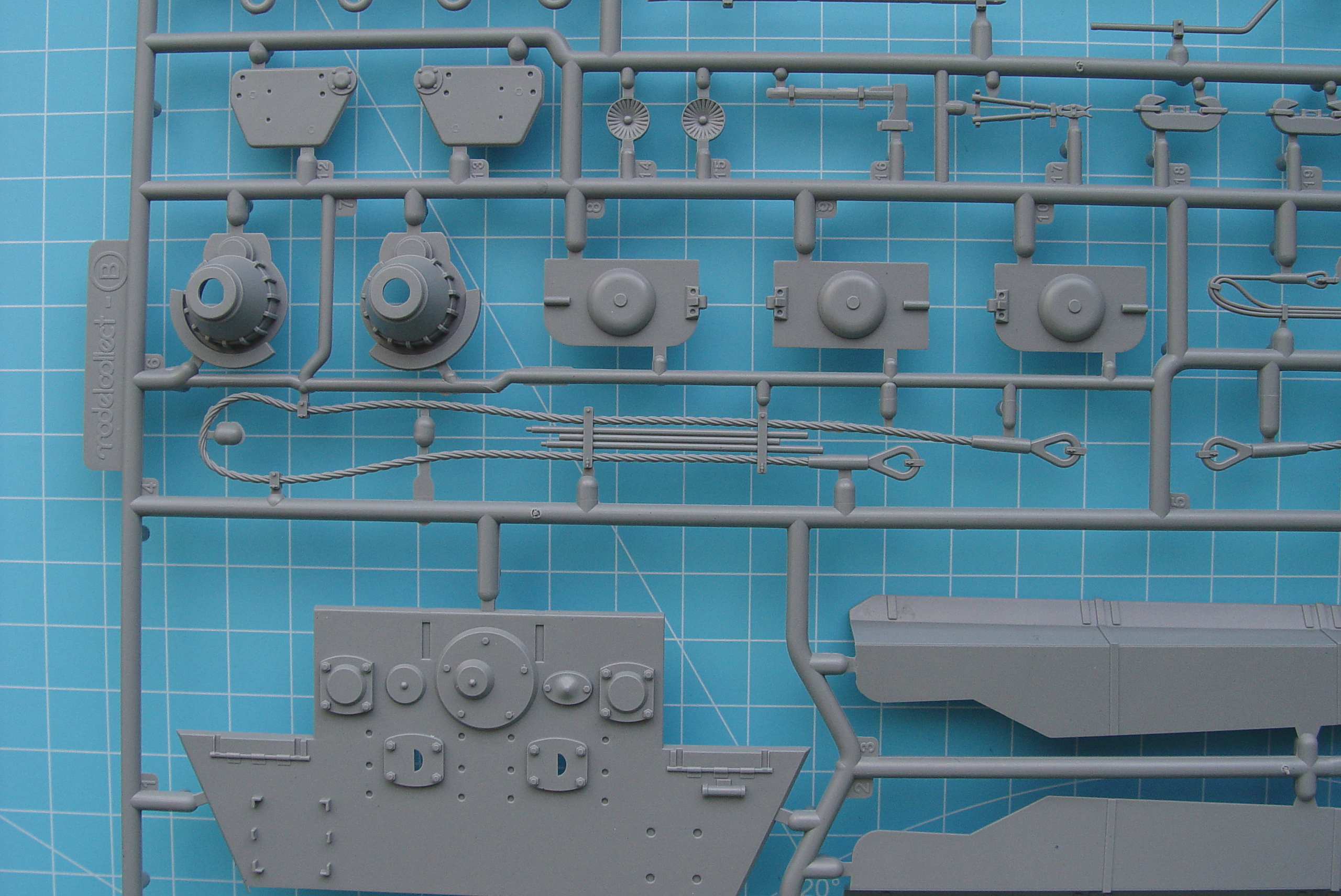 Wie gesagt, die Gestaltung der Bauteile ist sehr einfach, wie in den neunziger Jahren bei Tamiya oder Italeri. Man fühlt sich beim Betrachten der Spritzrahmen zurückversetzt. Wie haben heutzutage eine sehr schöne Modellbauzeit, denn das Niveau ist heute bei der Detaillierung wirklich um Welten besser.