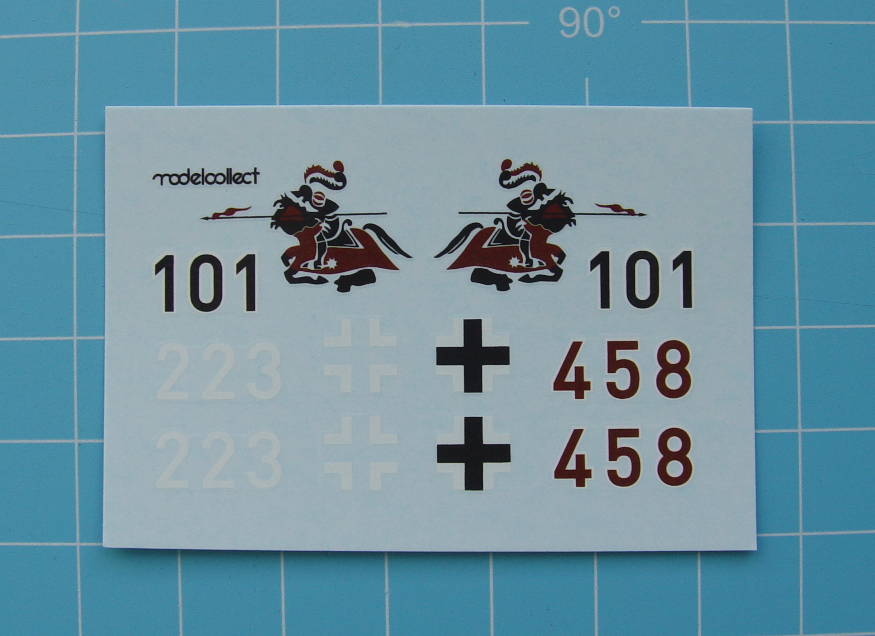 Der Decalbogen enthält drei verschiedene Turmnummern und Balkenkreuze.