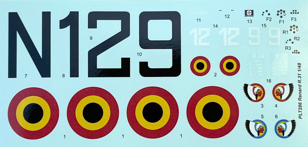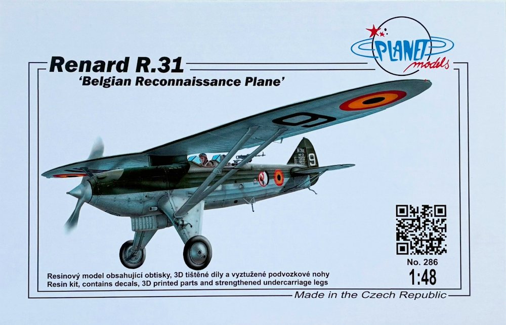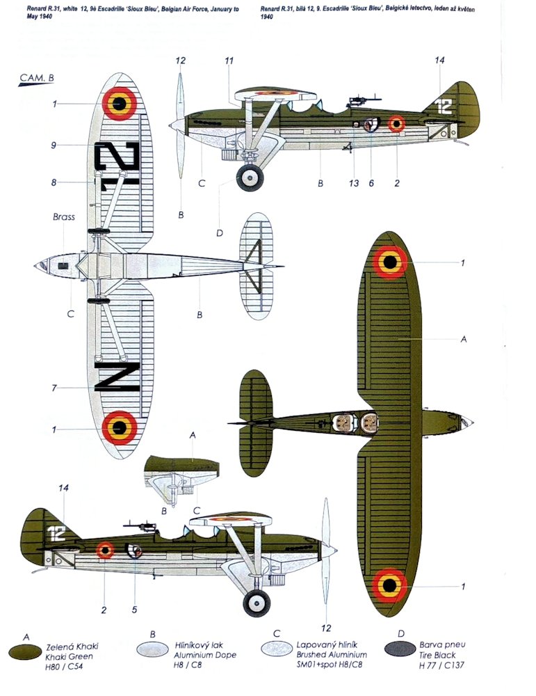 Vorbild: 1931 legte das junge Unternehmen Renard Const. Aeronautiques einen Entwurf für ein Aufklärungsflugzeug vor, das im Dezember 1932 zu seinem Erstflug startete. Nach Erfüllung aller behördlichen Vorlagen erfolgte zwischen 1934-36 der Bau von 35 Flugzeugen für die Aviation Militaire Belge. Mit Ausnahme einiger zeitweise zu Schulflugzeugen umgerüsteter Maschinen verwendeten vorrangig die beiden in Bierset bei Liège/ Lüttich stationierten Escadrille d‘ observation Nr. 9 (Sioux auf blauem Kreis) und 11 (Sioux auf rotem Kreis) die R-31. Zu Beginn des Überfalls auf die Benelux-Staaten1940 sind noch ca. 20 Flugzeuge vorhanden, welche bei über 50 Aufklärungsmissionen zum Einsatz kamen. Alle Maschinen gingen bei Erfüllung ihre Aufgaben oder nach der Kapitulation durch Selbstzerstörung verloren. Die Renard R-31 war ein in Mischbauweise hergestellter Hochdecker mit Zweiblatt Propeller und einem 487 PS starken Rolls-Royce Kestrel II-Motor. Als Bewaffnung dienten zwei 7,62-mm-Maschinengewehre.