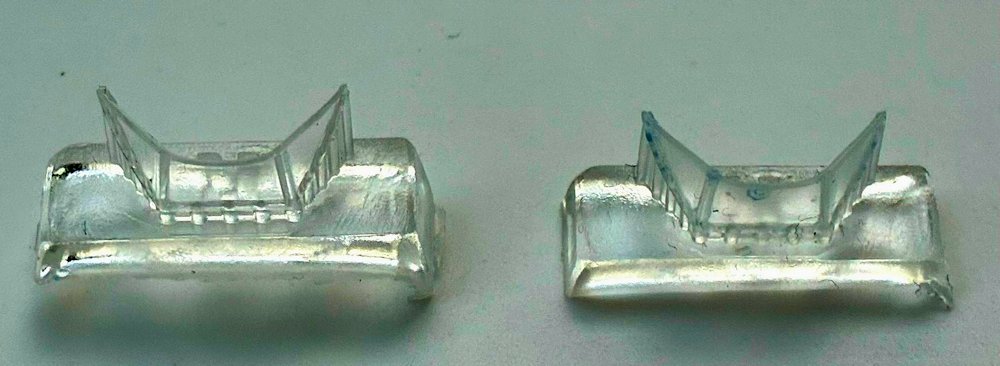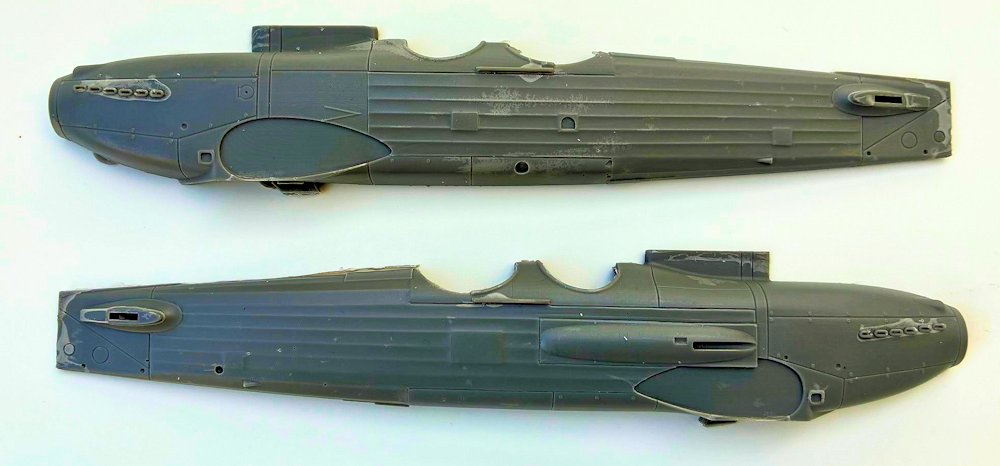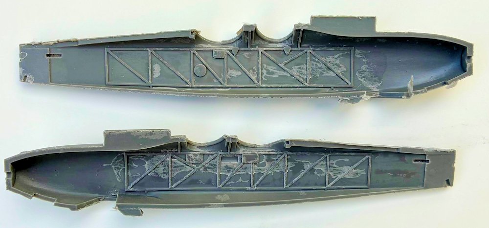 Fazit: Nach Säubern der ersten Teile zeigen sich die Stärken des Modells. Die Tragfläche liegt wie ein Brett, die Rumpfhälften passen. Der weiße Stab symbolisiert den Lauf des MGs im seitlichen Behälter. Für Modellbauer, die Erfahrung mit dem Material haben, ist dieser Bausatz von Planet Models zu empfehlen.