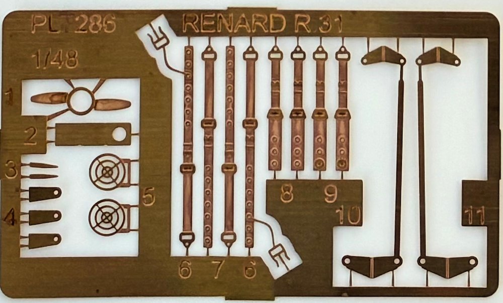 Modell: 2018 erschien bei Azur eine gut gelungene Renard in 1/72. Ihr folgt als großer Bruder die Neuerscheinung von Planet Models. Der feste Karton mit farbigem Deckelbild beinhaltet zwischen zusätzlichem Verpackungsmaterial alle 49 Bauteile aus Resin, den Bauplan, die Decals und eine kleine PE-Platine. Die Bauteile sind in PVC Tüten eingeschweißt oder im zusätzlichen Karton gesichert.