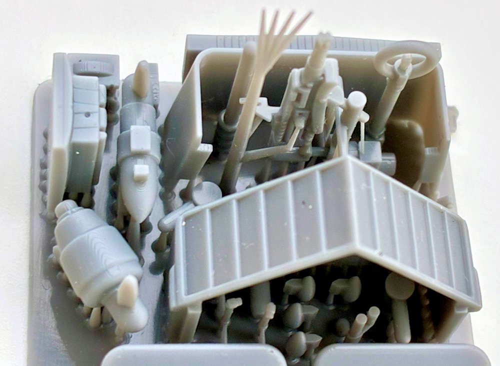 Der Innenraum besteht aus 15 Teilen. Für die Armaturen sind Decals vorhanden. Die Sitze bekommen geätzte Gurte.