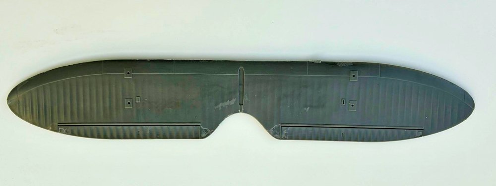 Die großen Elemente sind klassisch gegossen (helle Flecke sind nur farbliche Abweichungen). Der Rumpf ist zweiteilig und die Struktur des Originals wird außen wie innen gut wiedergegeben. Alle Steuerflächen sowie die Tragfläche sind einteilig und besitzen somit scharfe Hinterkanten. Die Darstellung der Stoffbespannung ist wie immer Geschmacksache, gibt dem Modell aber ein lebhafteres Aussehen.