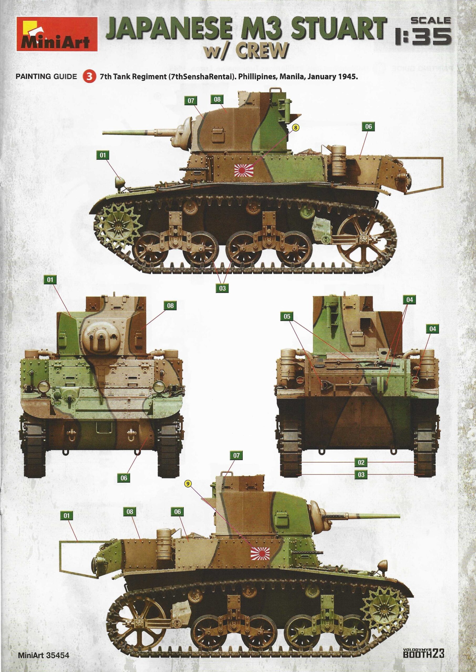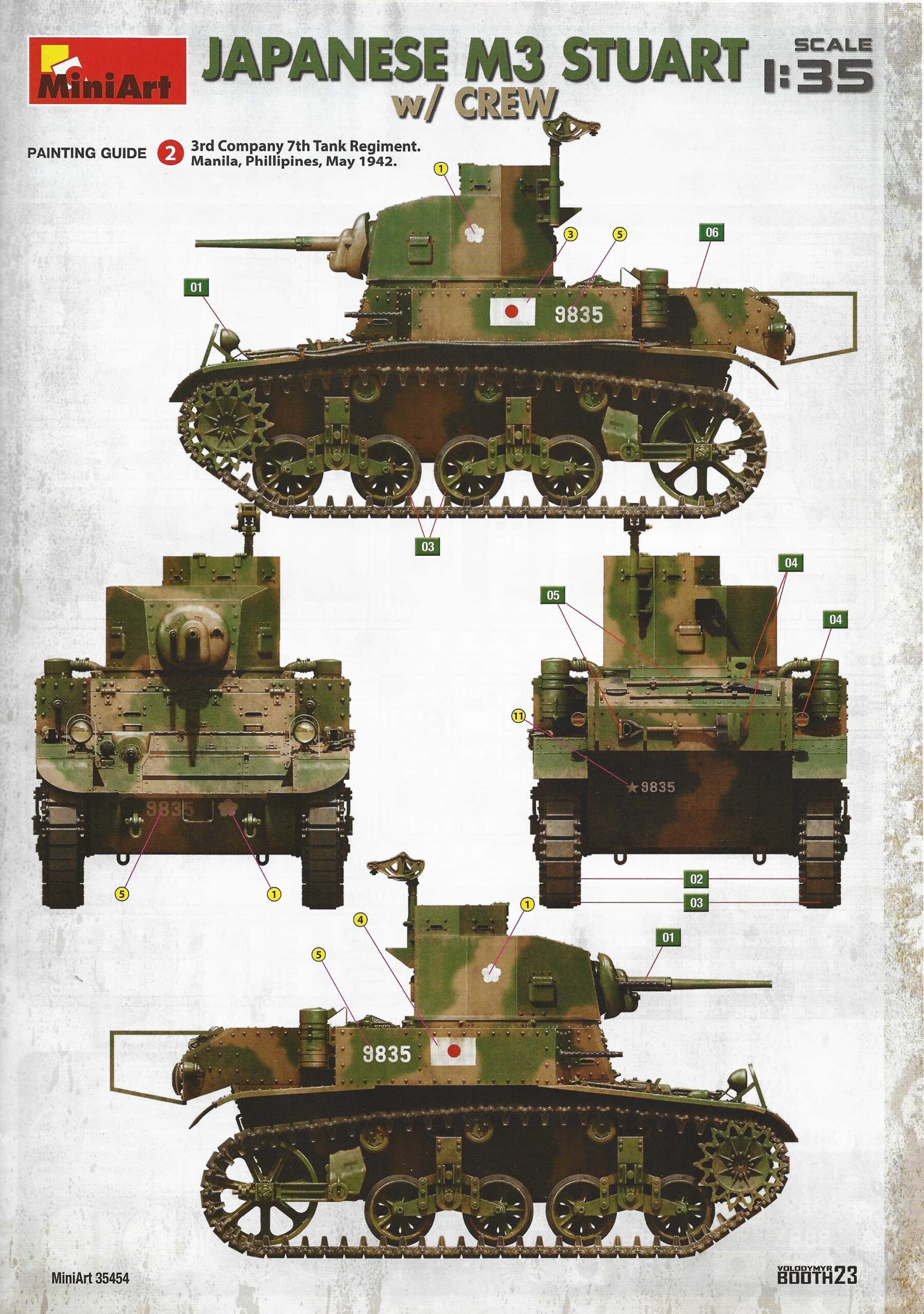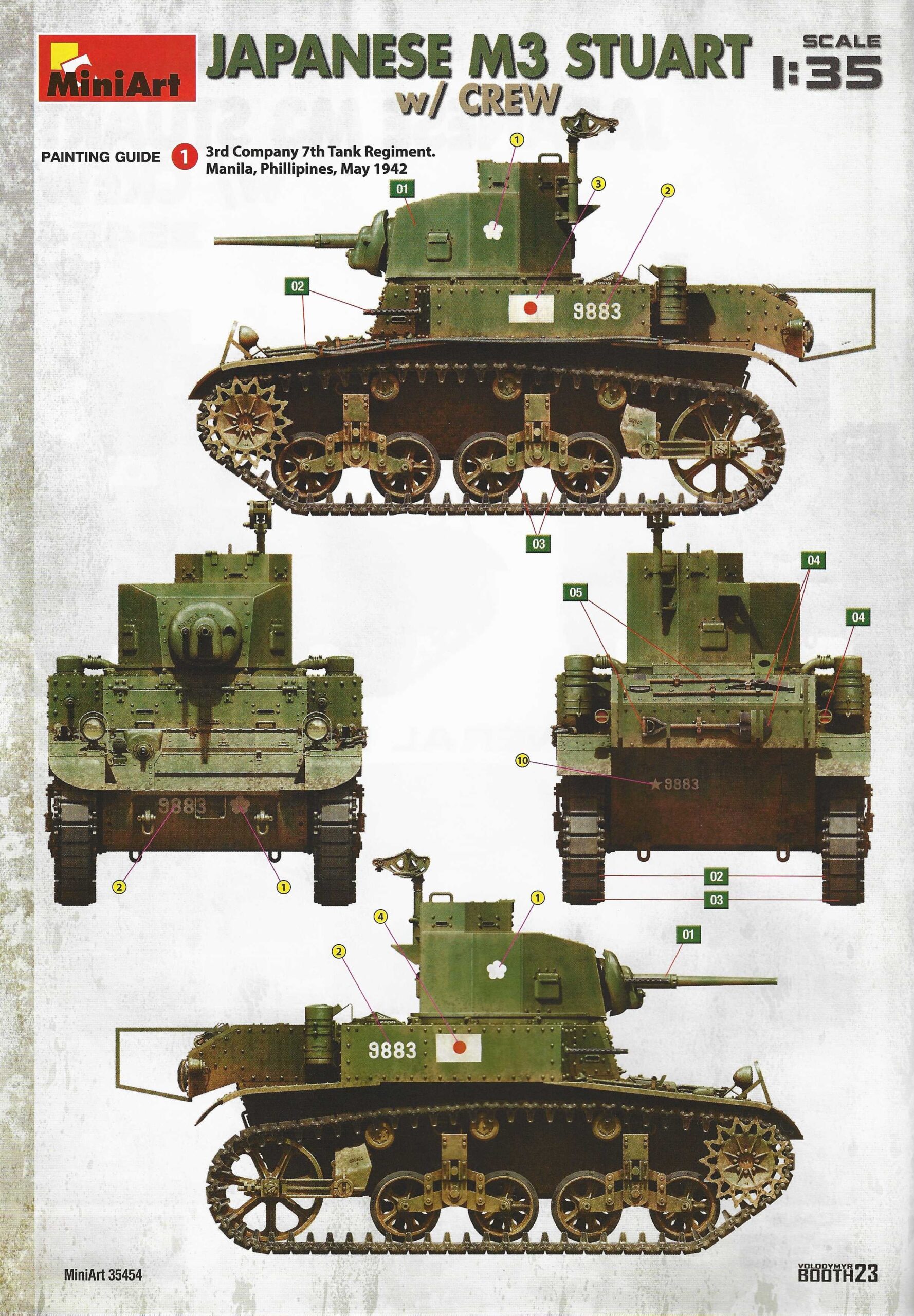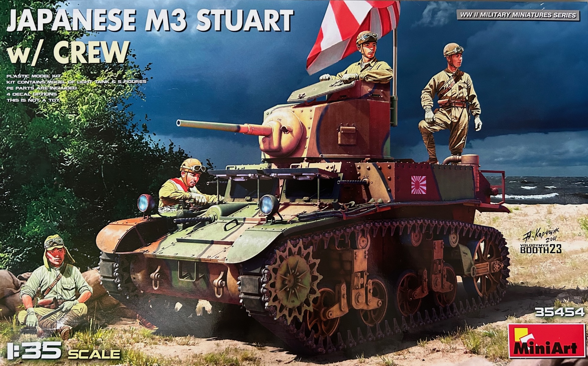 Der Bausatz: Miniart weitet das Angebot rund um das Thema M3 Stuart weiter aus. Nach den Optionen M3 früh, mid und late sowie den britischen Varianten, folgt nun die 10. Reinkarnation in Form von den Japanern erbeuteten und selbst genutzten Versionen.