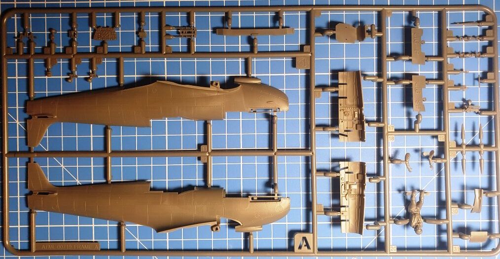 Der Kit basiert laut Scalemates auf älteren Spitfire-Kits von Airfix. Er besteht aus vier Gießästen in einem mittelgrauen Kunststoff mit insgesamt 114 Teilen sowie einem klaren Gießast mit neun Teilen. Die Oberfläche weist stellenweise eine leichte Rauigkeit auf. Alle grauen Gießäste finden sich in einem gemeinsamen Kunststoffbeutel, den noch ein weiterer kleiner Beutel mit dem Rahmen für die Klarteile besiedelt. Die Oberflächendetails der grauen Teile sind durch feine, gleichmäßige Gravuren, zahlreiche feine versenkte Niete, Schnellverschlüsse und ein paar erhabene Details dargestellt. Die Auswerfermarkierungen finden sich im Inneren der Bauteile. Fischhaut findet sich auch an den sehr kleinen Teilen nicht. Die Glasteile sind dünn und klar. Die Bauanleitung ist im bekannten Stil verfasst und führt auf 12 Seiten über 67 Baustufen zum fertigen Modell. Leider fehlt, wie immer bei den Briten, ein Teileplan, dafür sind die drei Bemalungs- und Decal-Platzierungshinweise farbig und in Vierseitenansichten ausgeführt.