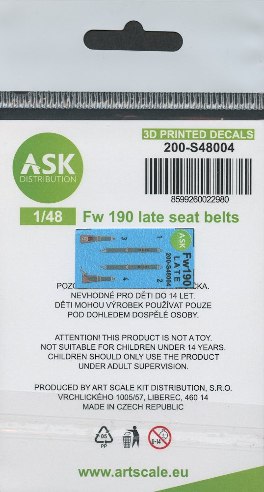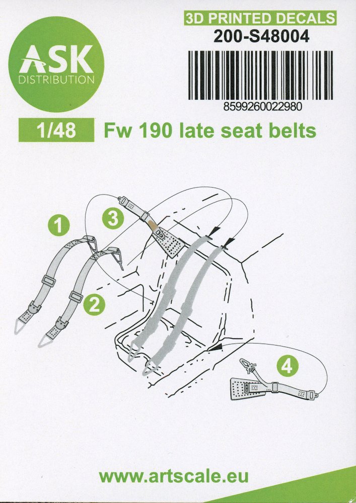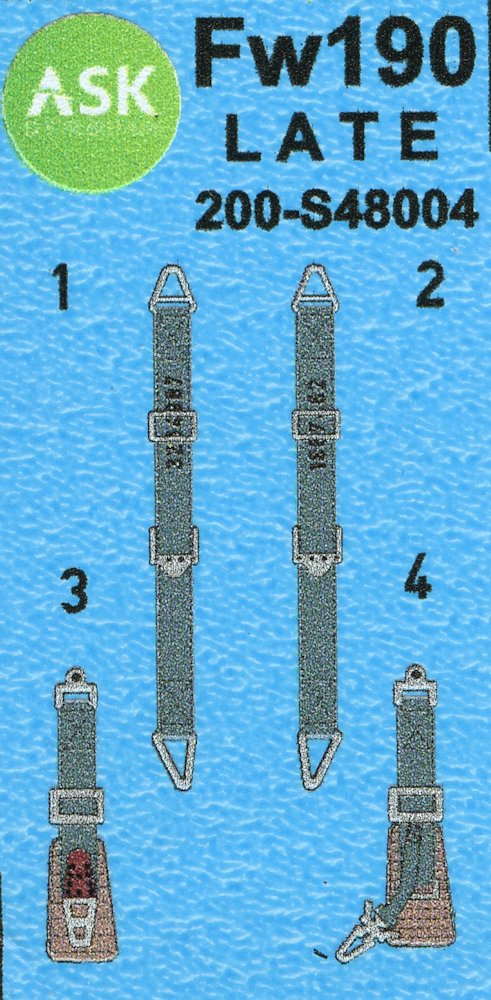Diese vierteiligen Sitzgurte für die Fw 190 in 1/48 wurden in einem 3D-Druckverfahren hergestellt. D.h. mehrere übereinanderliegende Farbschichten ergeben ein Decal mit einer erhabenen Oberflächenstruktur.