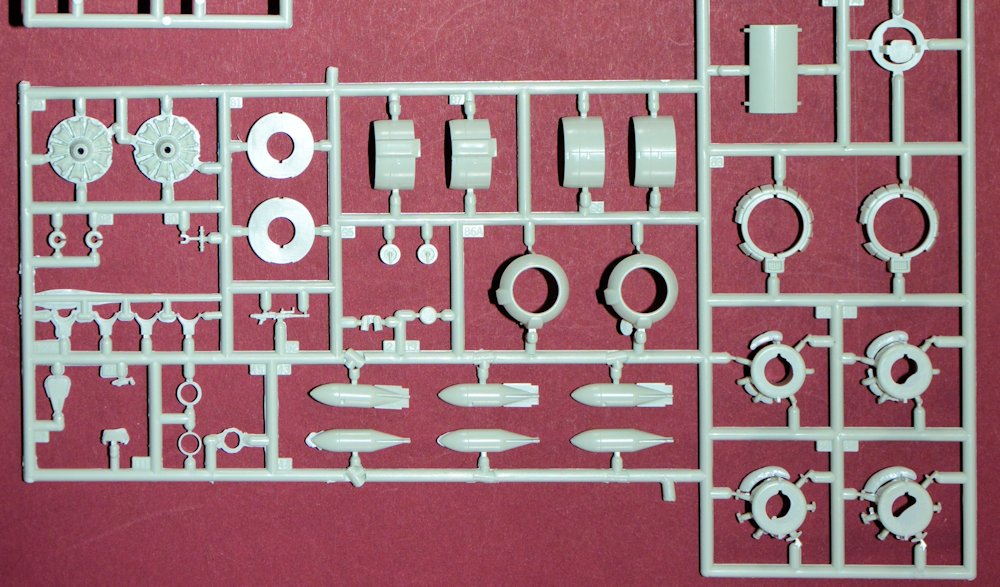 Der Hauptfahrwerkbereich ist sehr gut wiedergegeben und der Motor ausreichend detailliert. Teil 80 ist hier etwas zu groß geraten und passt daher nicht ohne Bearbeitung in die Motorverkleidung.