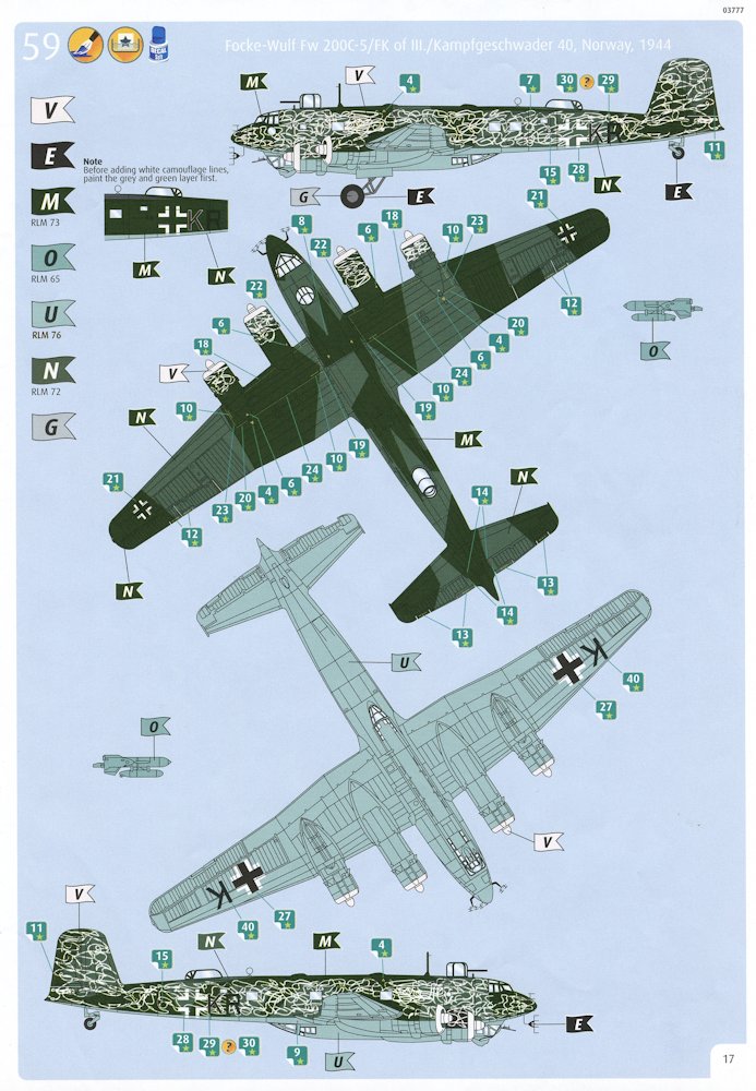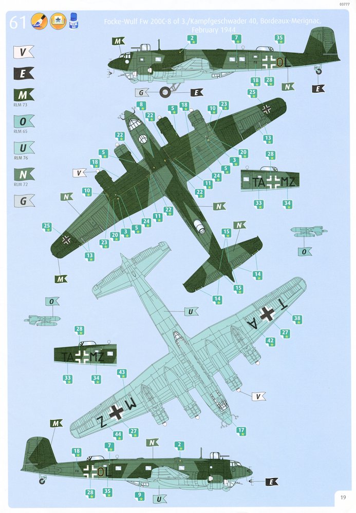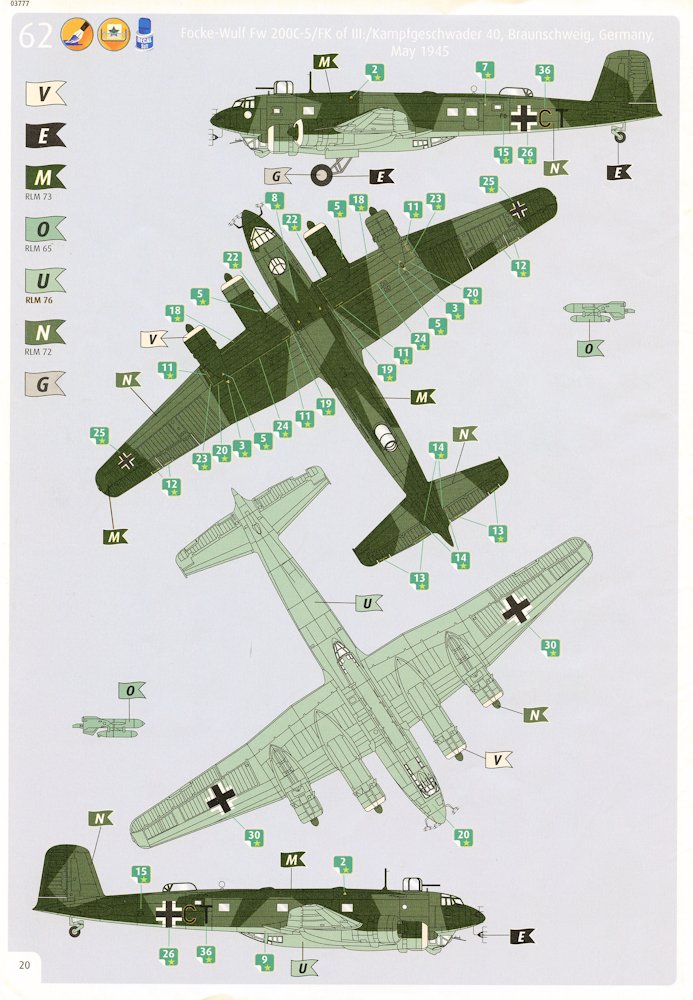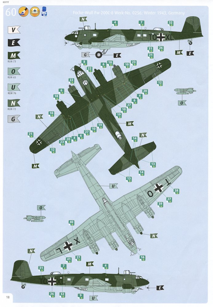 Vorbild: Die Fw 200 „Condor“ gehörte zu den modernsten Verkehrsflugzeugen der 1930er Jahre. Nach Kriegsbeginn wurde sie notdürftig zum Fernaufklärer bzw. Kampfflugzeug umgerüstet. Die Aufgabe der Fernaufklärer war es, die U-Boote an alliierte Konvois heranzuführen, was anfänglich gut funktionierte. Es wurden insgesamt 280 Flugzeuge gebaut.