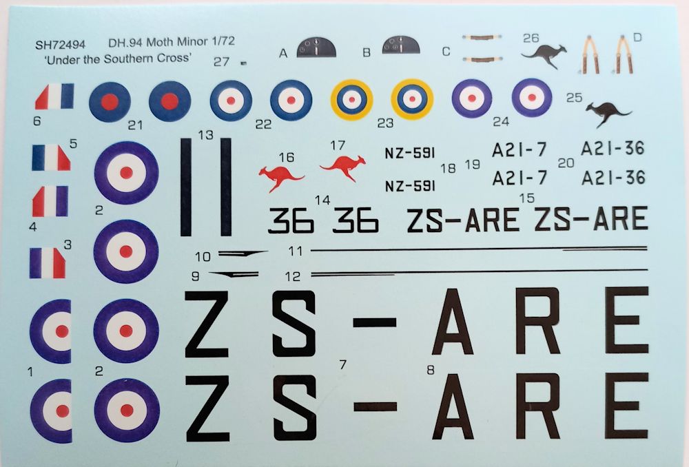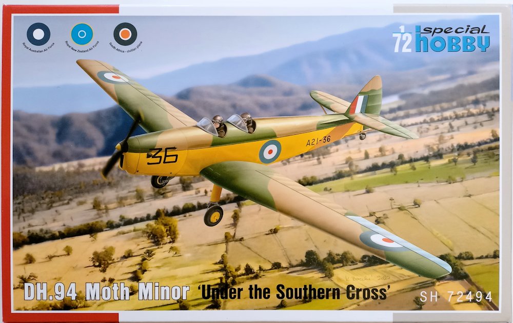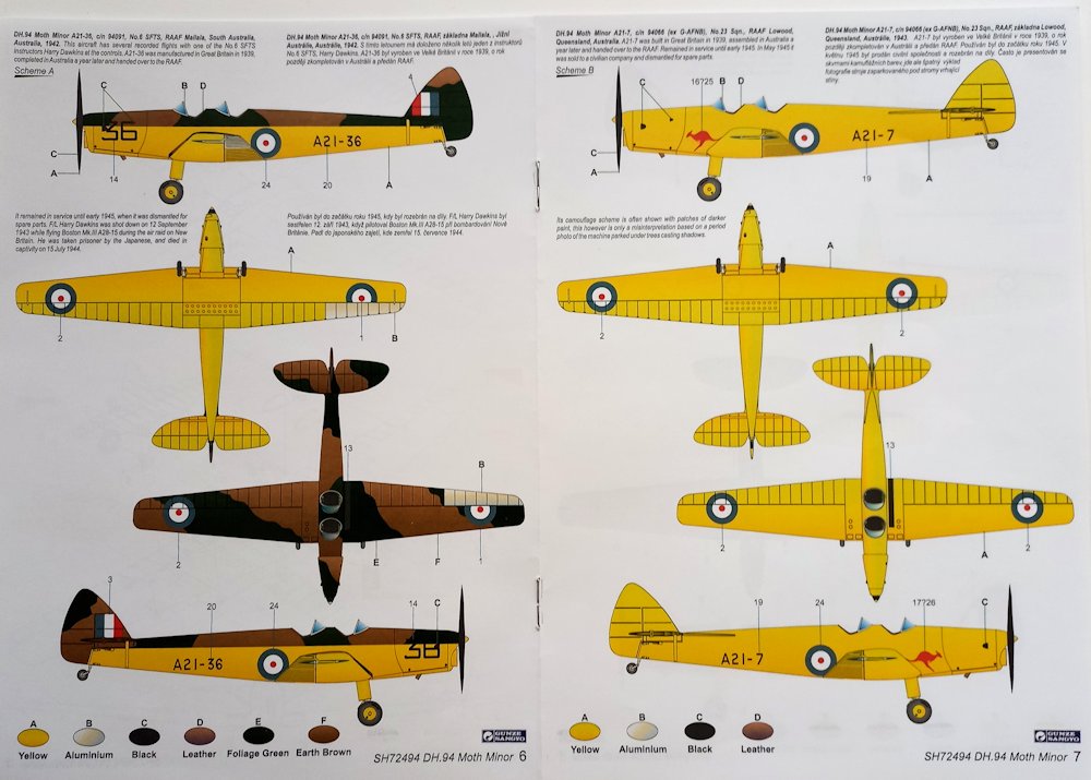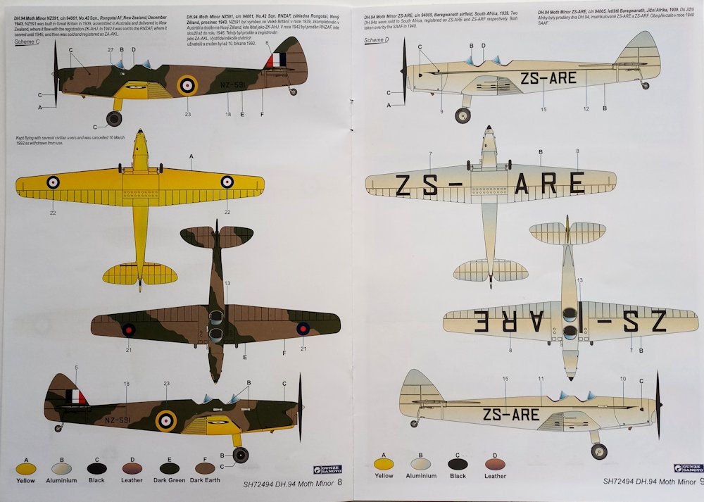 Vorbild: Die De Havilland DH.94 Moth Minor war ein Schulflugzeug. Es wurde während des Zweiten Weltkrieges zur Pilotengrundausbildung verwendet. Einsatzländer waren das Vereinigte Königreich und Australien. Von 1938 bis 1939 wurden von dem Flugzeug 73 Exemplare hergestellt. Ab 1939 erfolgte die Produktion der Maschine in Australien, wo weitere 42 Flugzeuge hergestellt wurden. (nach Wikipedia)
