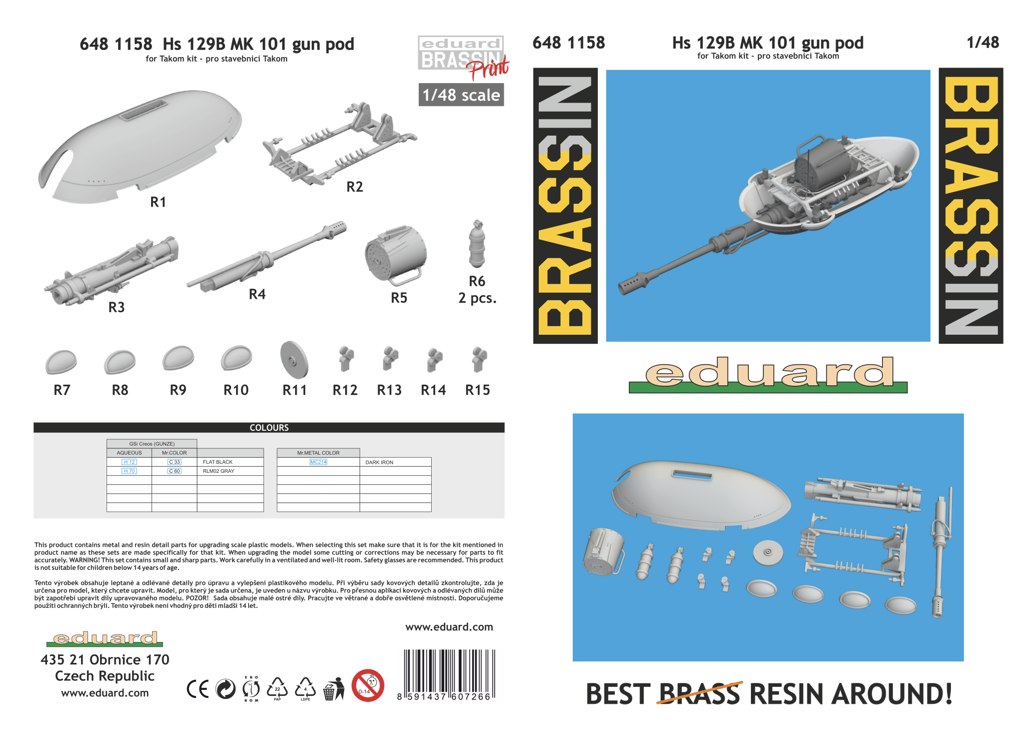 Das Update Set: Diejenigen, die bereits den neuen Takom Bausatz der Hs 129 B-2 besitzen, kennen die sehr gute Qualität der Teile für die Darstellung der 3cm MK 101 Maschinenkanone. Dass das Ganze aber noch einen kleinen Tick besser geht, beweist Eduard mit dem brandaktuellen Update Set aus der hauseigenen Brassin Serie.