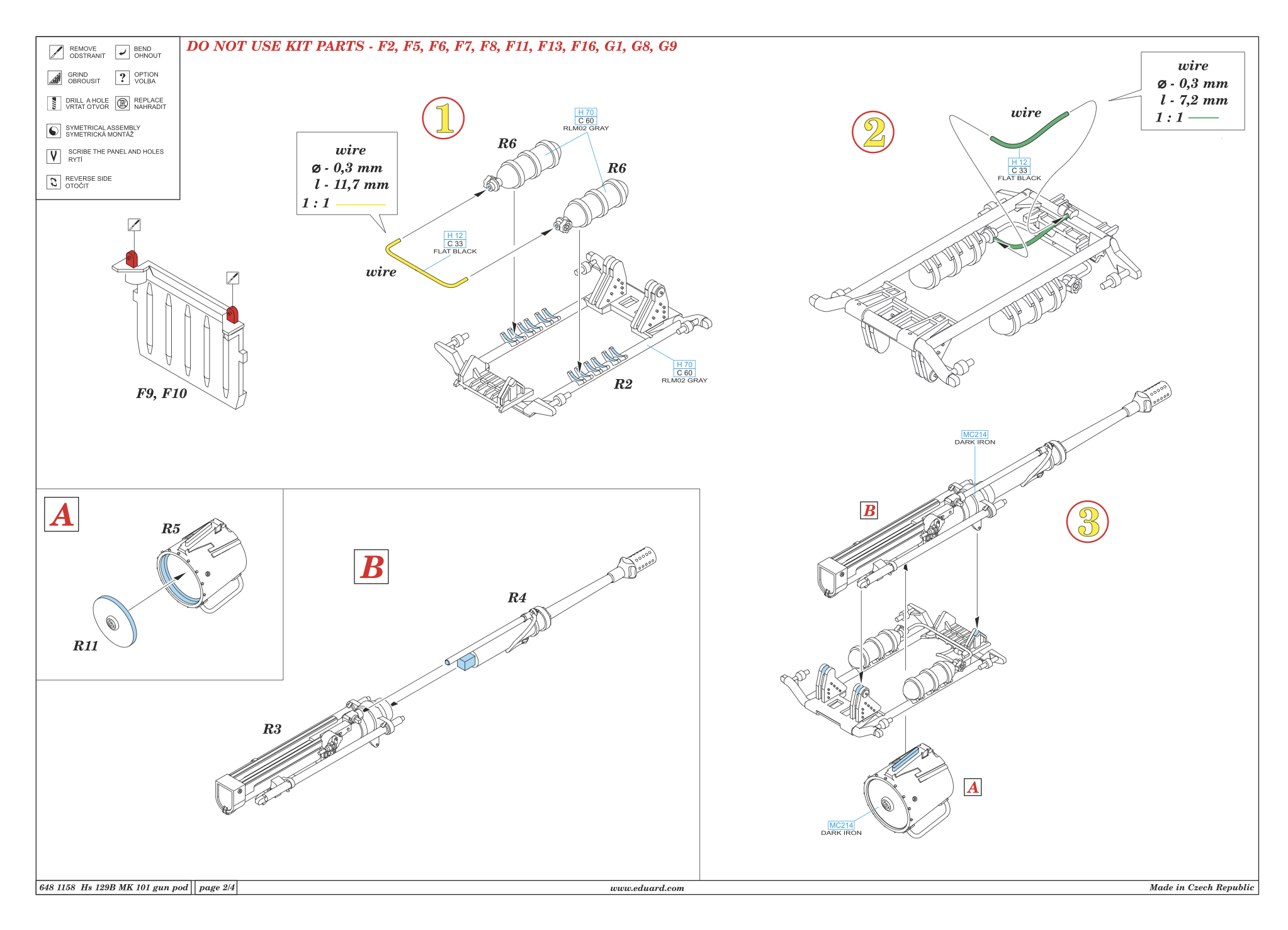 Der Bauplan: Als Montagehilfe liegen zwei beidseitig bedruckte Blätter im Format DIN A4 bei, auf denen klar und nachvollziehbar der Zusammen- und Einbau der Teile veranschaulicht wird. Darüber hinaus finden sich auch noch Hinweise, wo an den Teilen noch Leitungen und Kabel anzubringen sind.
