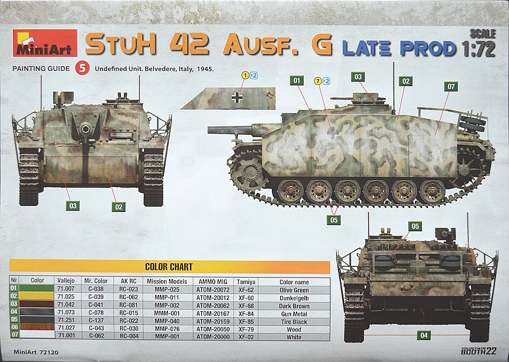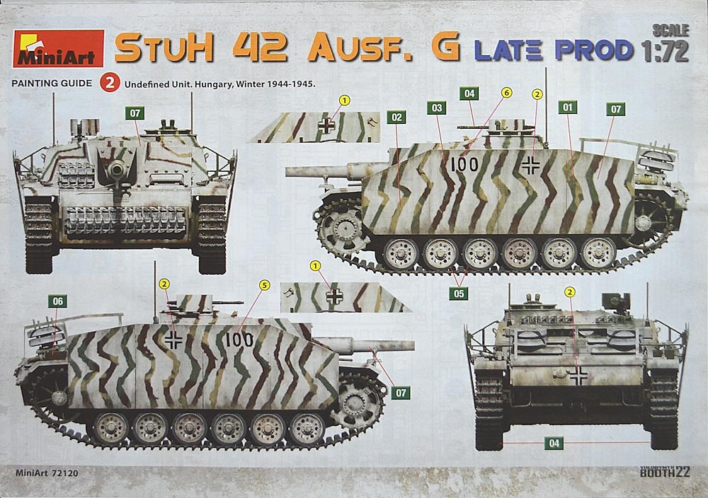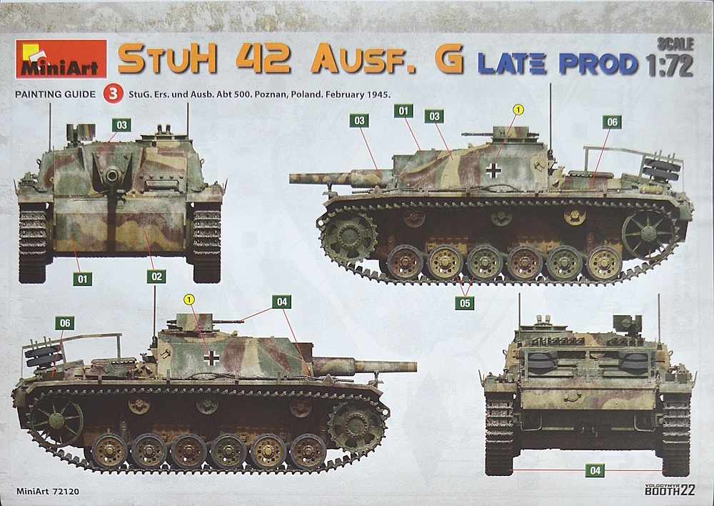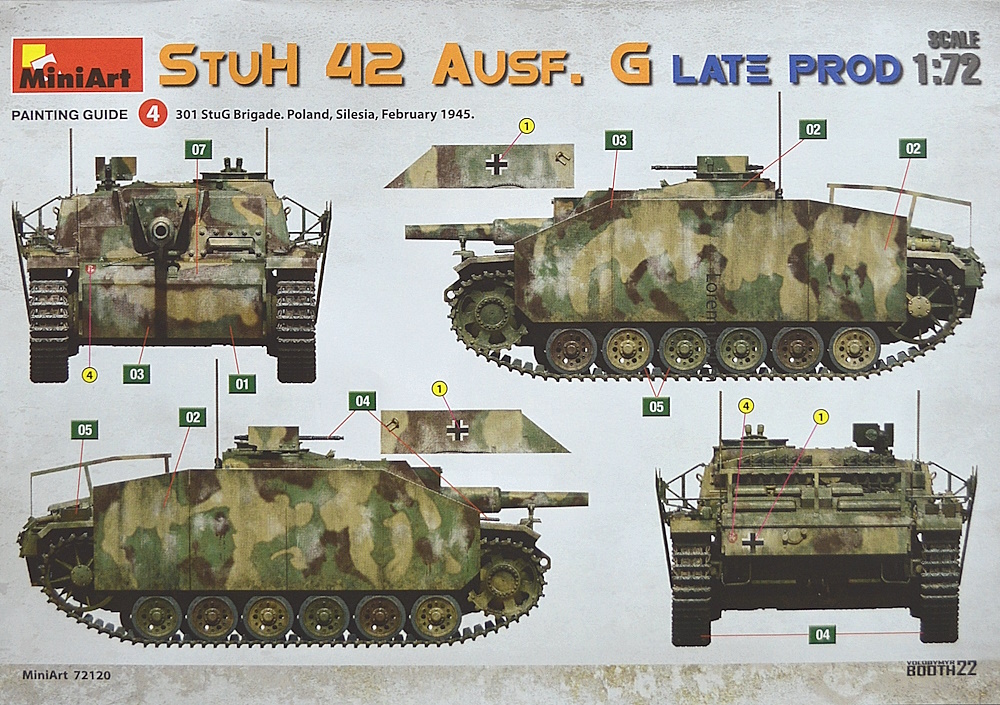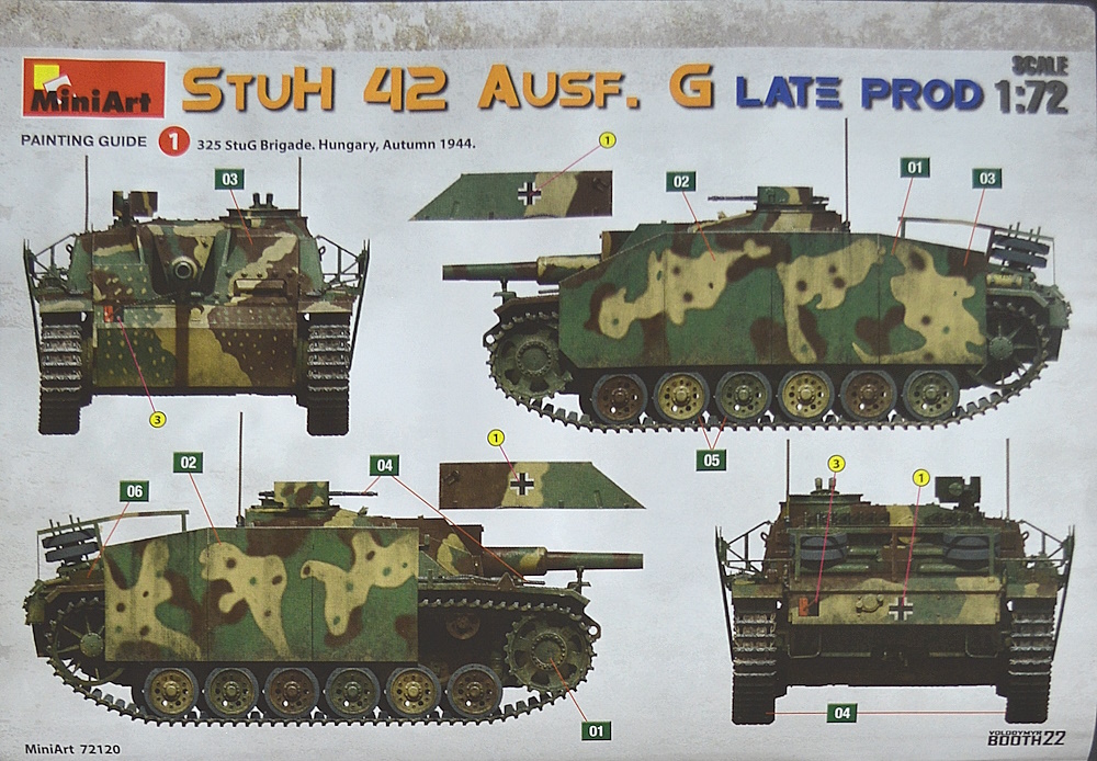 Bausatz: MiniArt hat bereits im Maßstab 1:35 eine Vielzahl an Bausätzen für das StuG III Ausf. G und StuH herausgebracht. Hier wurden (fast) alle Merkmale der einzelnen Produktionslose berücksichtigt, sodass der Modellbauer mit einem Bausatz wirklich genau das Sturmgeschütz bauen kann, was er auf einem Vorbildfoto sieht. Seit 2023 erweiterte MiniArt das Produktportfolio um den Maßstab 1:72. Seitdem sind bereits, Stand März 2026, 10 Bausätze zum StuG Ausf. G bzw. zur StuH erschienen!