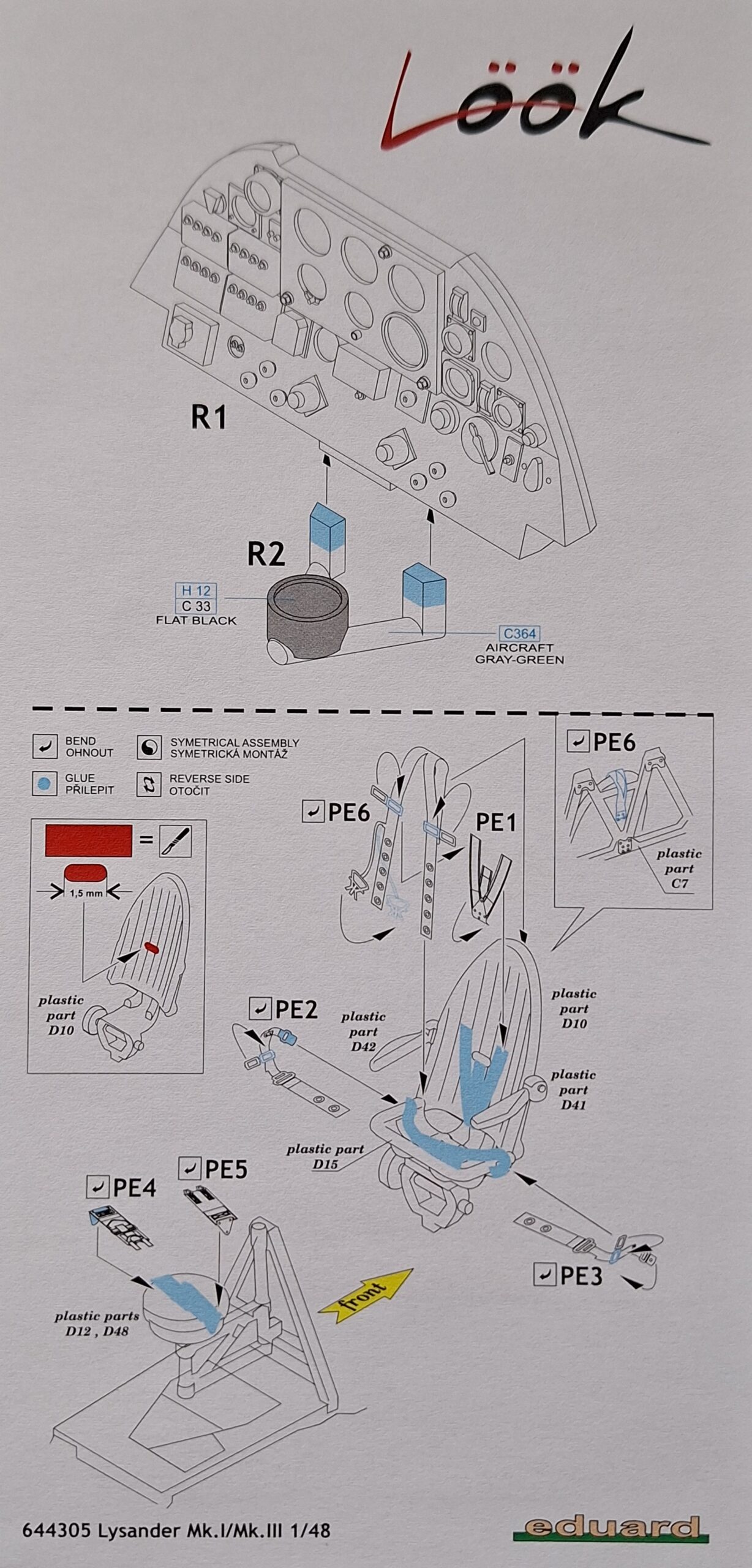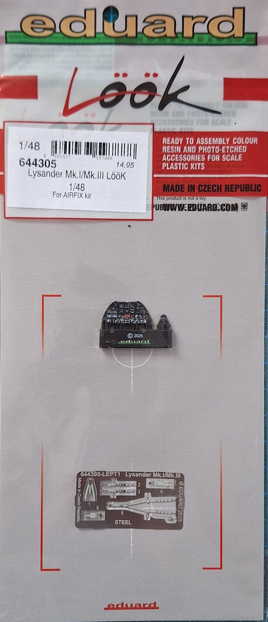 Für den gelungenen AIRFIX-Bausatz (Artikel-Nr. A07116) des britischen Verbindungsflugzeuges im Maßstab 1/48 hat EDUARD zwischenzeitlich ein Zubehörset in der LÖÖK-Reihe auf den Markt gebracht. Neben einem sauber bedruckten Gerätebrett aus Resin als Alternative für das Bausatzteil liegt auch das Gurtzeug für den Piloten als bereits farblich bedrucktes Ätzteil bei.