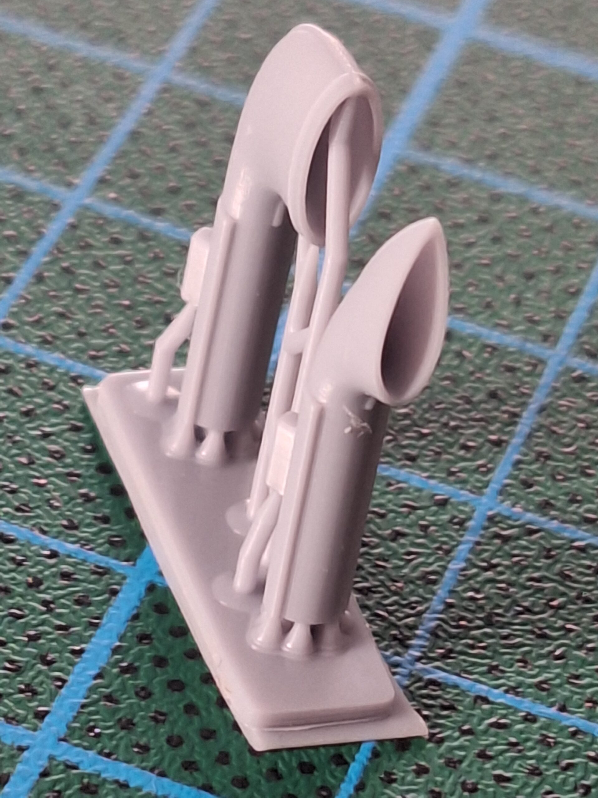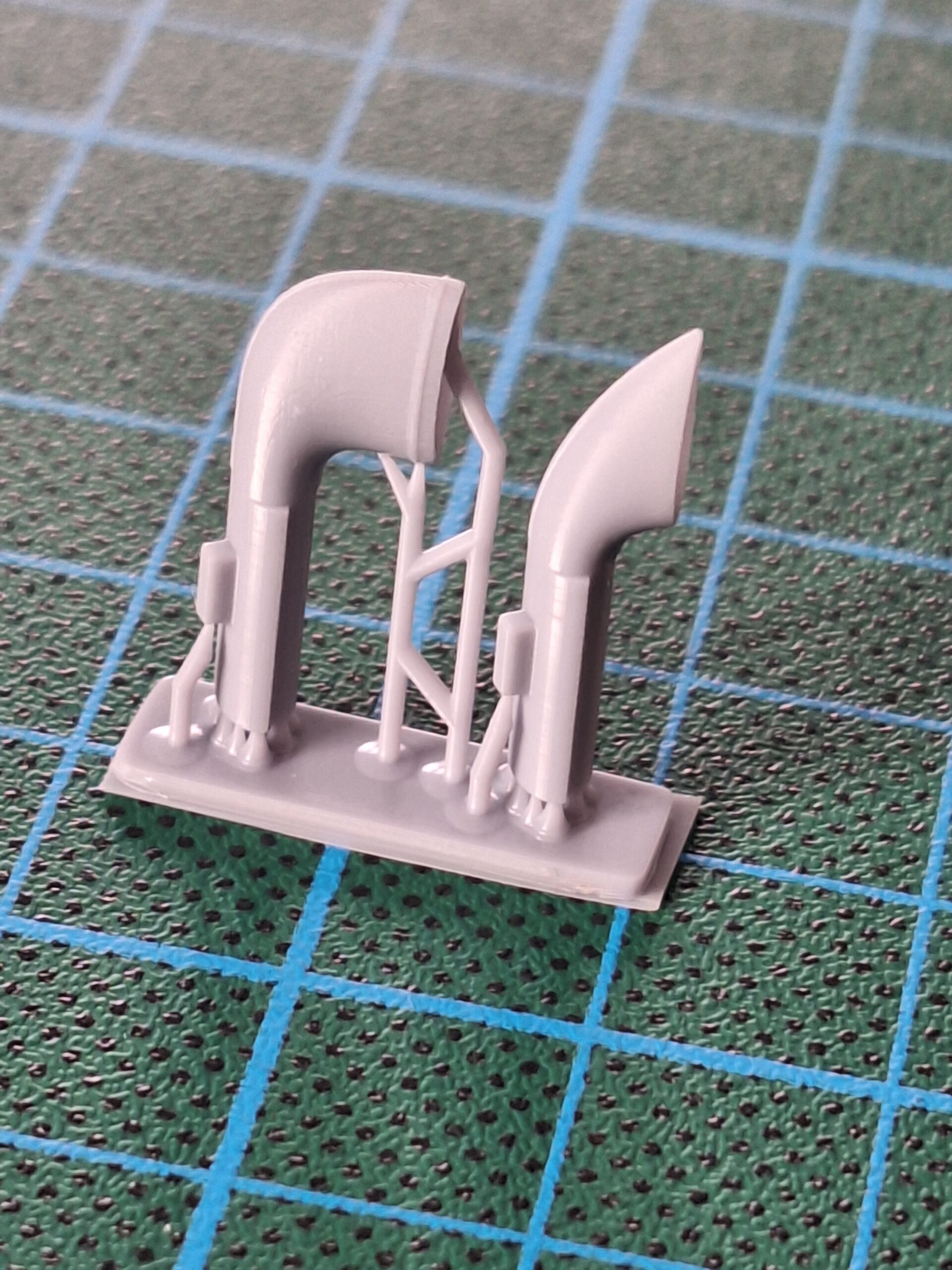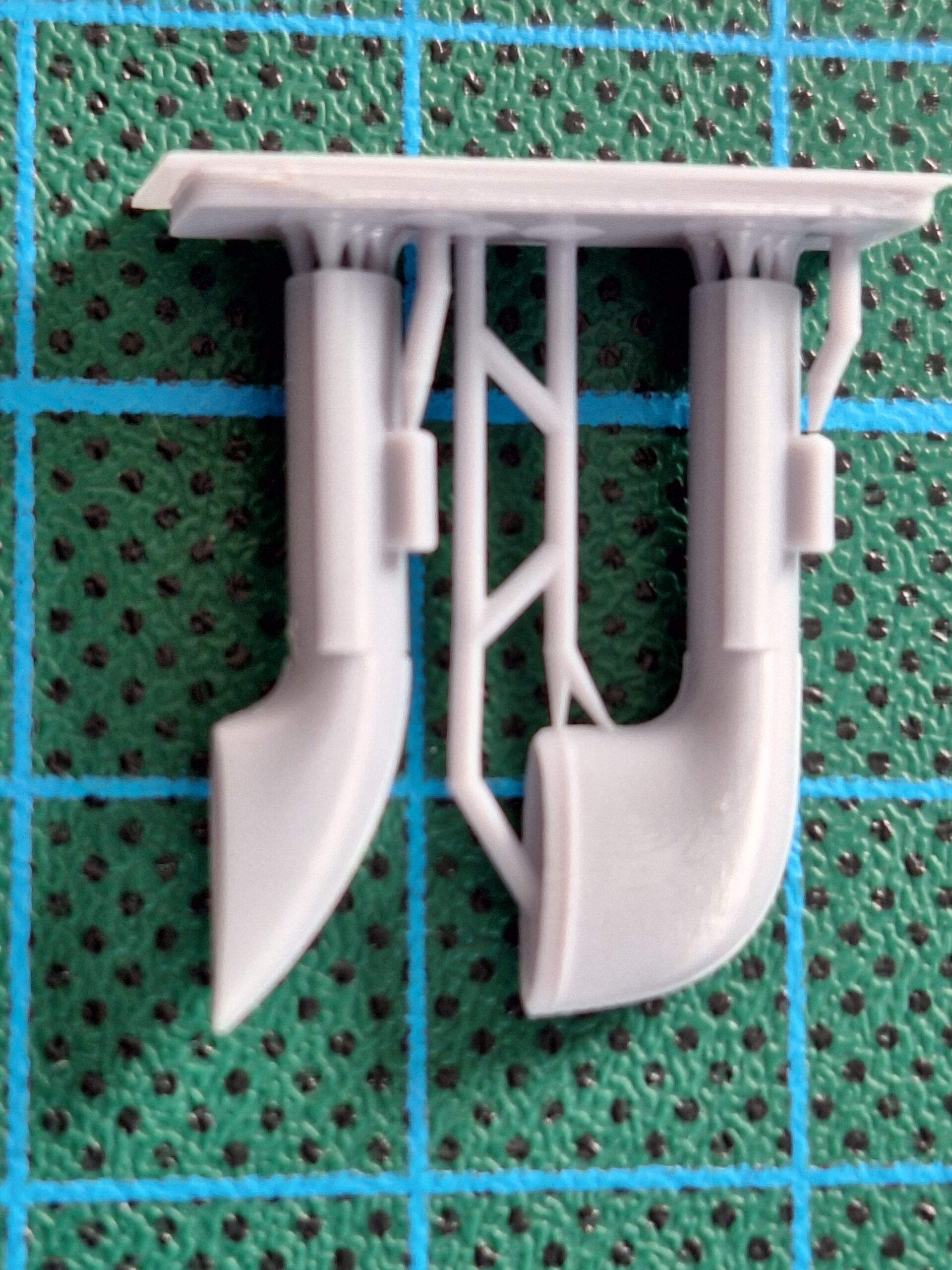 Der tschechische Hersteller Special Hobby liefert ein Zubehörset mit zwei Typen von Abgasrohren für den gelungenen AIRFIX-Bausatz (Artikel-Nr. A07116) des britischen Verbindungsflugzeuges im Maßstab 1/48. Das Set beinhaltet sowohl ein frühes (ovale Form) sowie ein späteres Abgasrohr (auf einer Seite spitz zulaufend):
