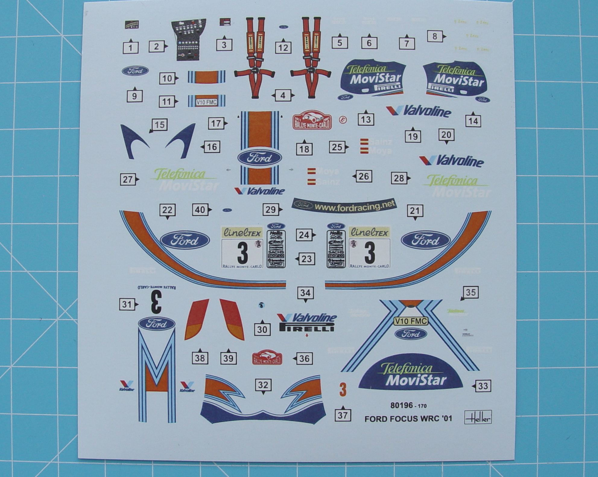 Der kleine Decalbogen ist sehr gut gelungen. Hier ein dickes Plus. So kommt Rennfreude auf, beim detaillieren des fertigen Modells. So viele bunte Decals, so kommt auch bei einen Anfänger Modellbauspaß auf.