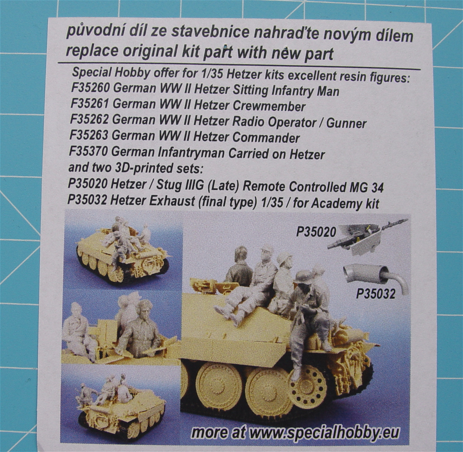 Special Hobby hat mal wieder ein schönes kleines Zurüstset herausgebracht. Das Sortiment dieser Firma an kleinen verbesserten Zurüstsets ist doch schon sehr umfangreich bis dato geworden. Mit Sicherheit findet jeder Panzer-Modellbauer für sein Projekt ein passendes Set. Mir fallen an dieser Stelle schon selbst gleich einige ein…