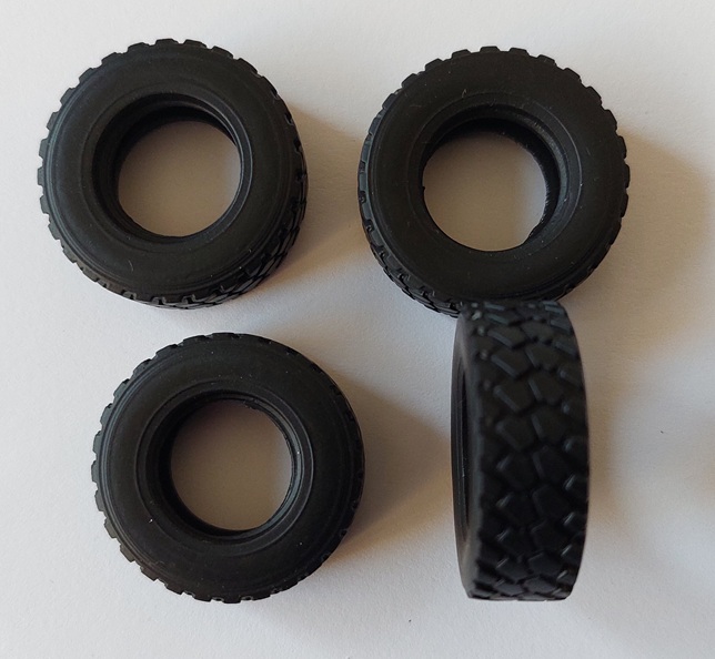Die Reifen bestehen, wie oben bereits geschrieben, aus Gummi und werden auf jeweils zweiteilige Felgen gezogen. Sie haben ein sehr schönes Profil, weisen aber keinerlei Herstellerangaben auf. Die Waffenstation auf dem Dach besteht ebenfalls auch mehreren Teilen und bleibt nach dem Anbau an das Fahrzeug beweglich. Als Antenne ist an der Bauanleitung ein Stück Draht befestigt, welches am Modell anzubringen ist.