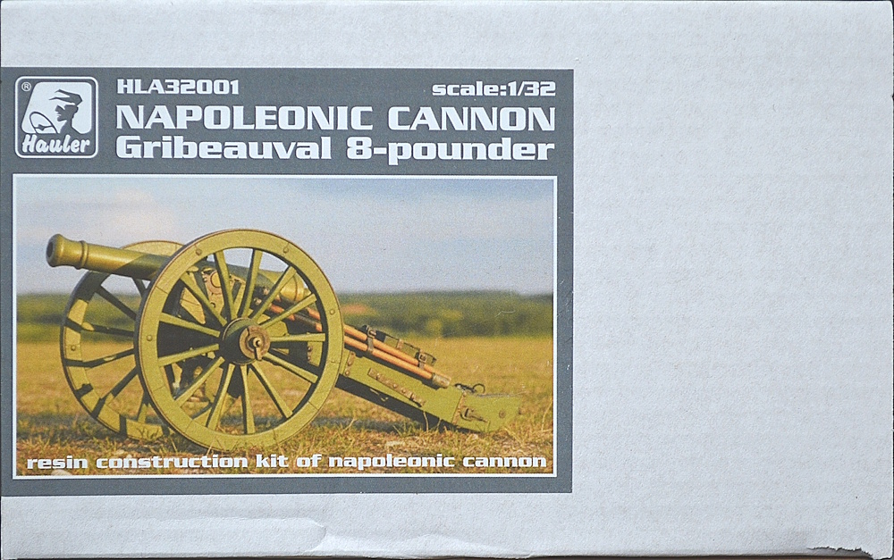 Mit diesem Bausatz wagt sich Hauler erstmals an den Maßstab 1/32. Dieser Maßstab, auch bekannt als 54 mm, ist unter Liebhabern historischer Figuren sehr populär. Für diese bringt Hauler einen hochdetaillierten Gribeauval-8-Pfünder heraus.
