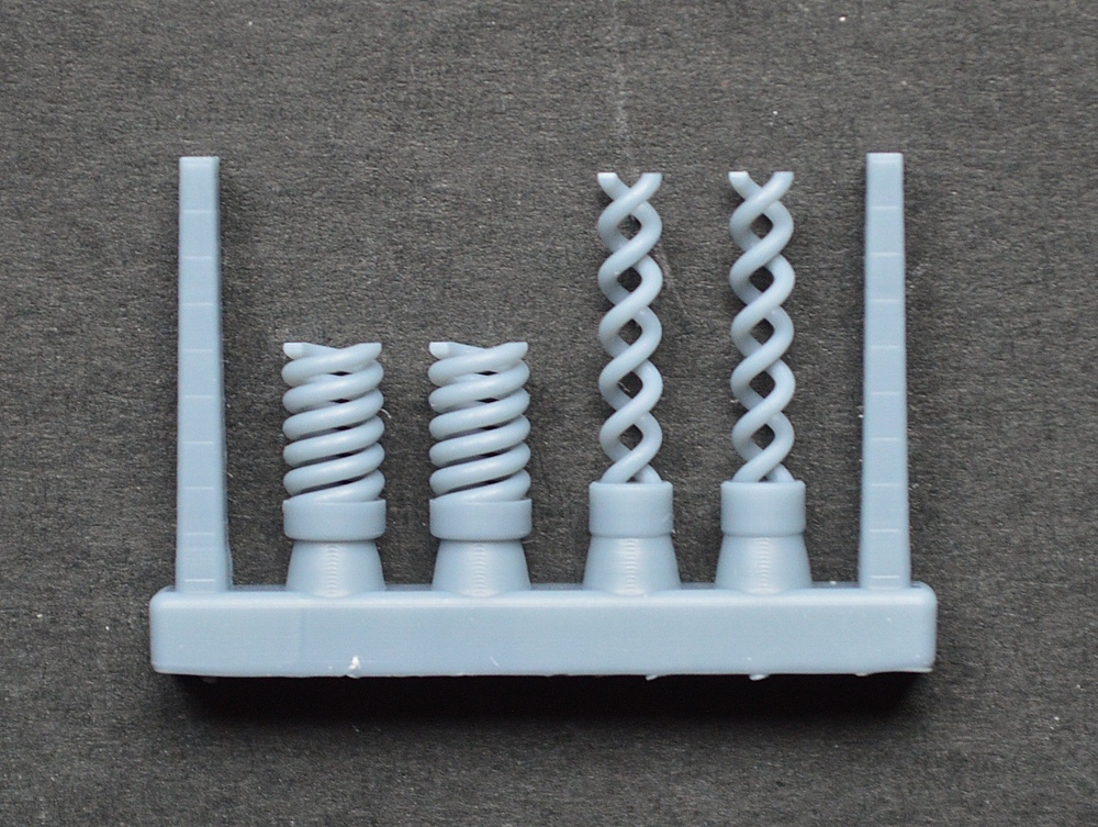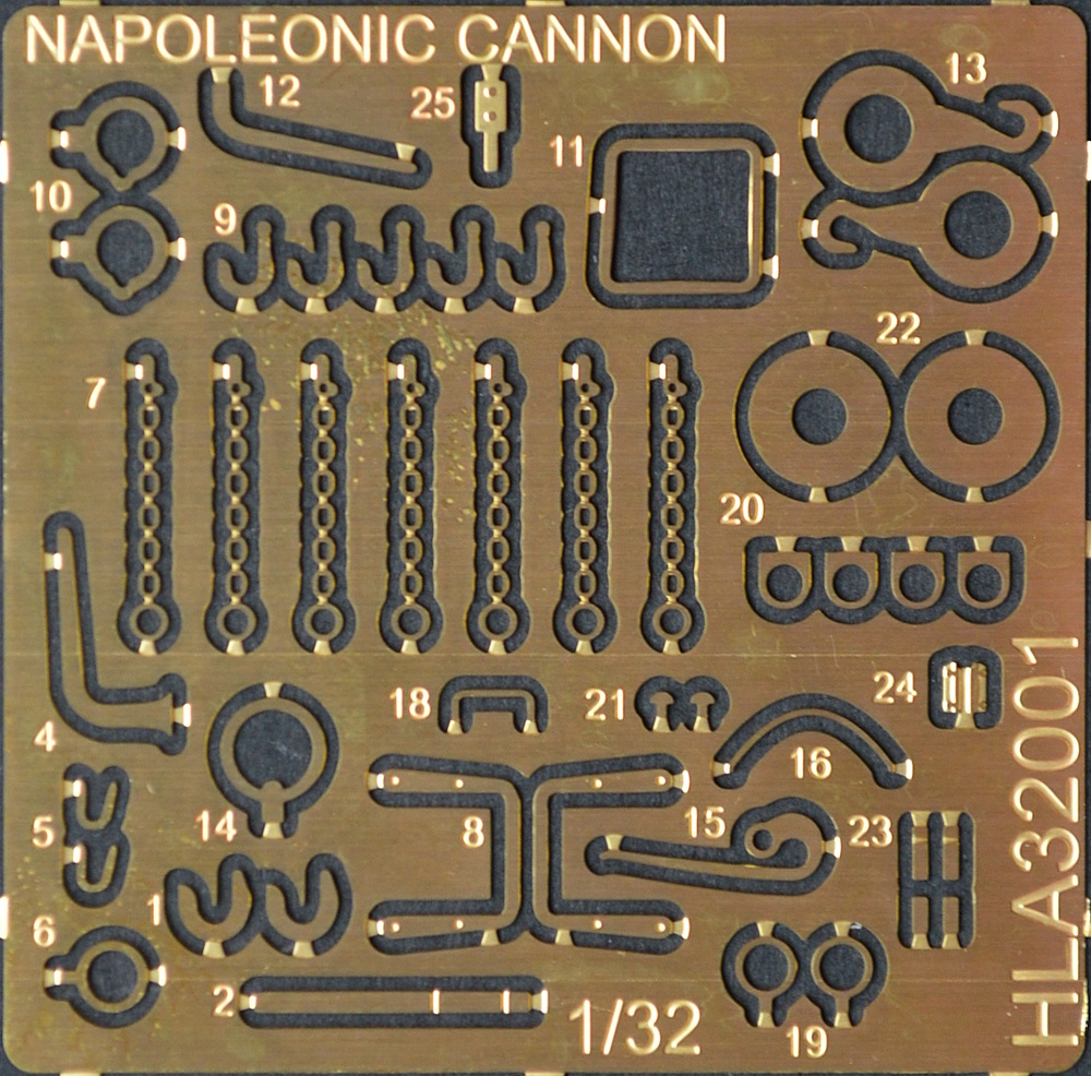 Der Zusammenbau beginnt mit dem Geschützrohr und dem Zubehör und führt anschließend zur Lafette. Die Richtschraube zum Höhenrichten kann so verbaut werden, dass die Kanone in einem beliebigen Winkel justiert bleibt. Viele der Ätzteile müssen noch gebogen und einige Resinteile aufgebohrt werden. Die Bauanleitung geht hierauf genügend ein und auch die Durchmesser der Bohrlöcher werden lobenswerterweise angegeben. Auf den Lafettenholmen wird das Coffret (die Kiste zum Transport von Munition und Pulverladungen) befestigt. Leider liegt dieses nur als massiv gegossenes Teil bei und lässt sich folglich nicht geöffnet darstellen. An den Lade- und Wischstöcken werden die Köpfe separat angeklebt. Das wirkt sich positiv auf das spätere Gesamtbild aus. Besonders gelungen sind hier die filigranen 3D-gedruckten Schrauben für den Kugelzieher und der Wischstock. Die Ketten sind als Ätzteile ausgeführt und sollen gebogen werden. Wer den Detaillierungsgrad noch weiter erhöhen möchte, kann diese durch Messingketten, etwa aus dem Schiffsbaubedarf, ersetzen. Auch können einige flache Ätzteile, wie die Haken und Halterungen, mit Spachtelmasse in eine rundere Form gebracht werden, da diese im Original geschmiedet waren. Für ein Diorama bieten sich natürlich noch Figuren oder auch Munitionswagen an. Hier bietet der Markt bereits eine breite Auswahl.