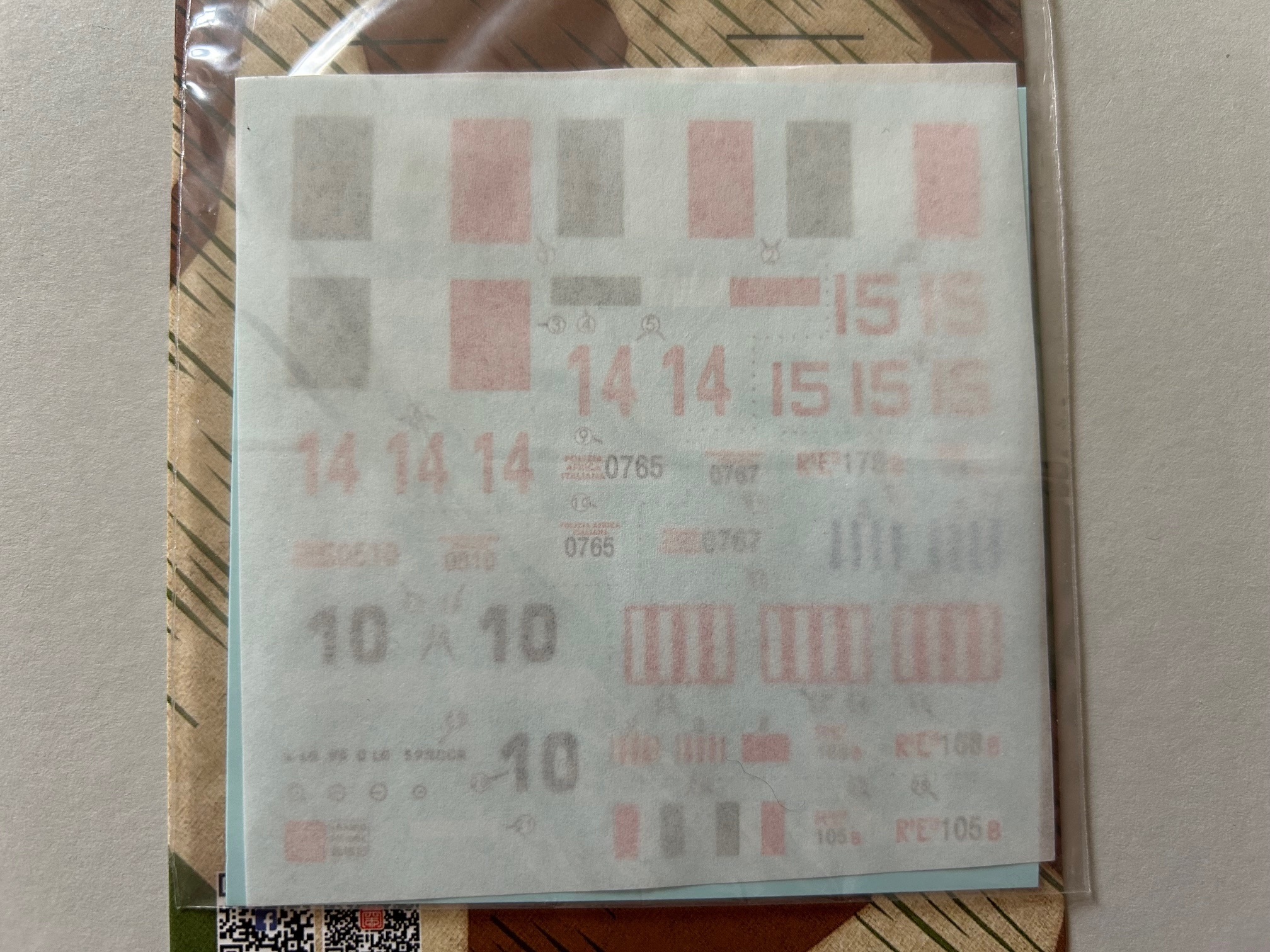 Der Bauplan und Abziehbilder: Als Bauanleitung legt Lanmo ein 14-seitiges Heft im Format DIN A4 bei, das sicher und klar in 14 Bauabschnitten den Bauprozess begleitet. Neu zu ergänzende Bauteile werden dabei immer farblich hervorgehoben und zusätzlich anfallende Arbeiten entsprechend erläutert. Hier glaube ich jedoch, dass es sich nicht nur um generelle Hilfestellungen handelt, sondern auch um Korrekturmaßnahmen in Bezug auf ein nicht ganz perfektes Design der Bauteile. Wahrscheinlich wollte oder konnte man das bei den Formen nicht mehr korrigieren und behilft sich nun mit entsprechenden Anweisungen im Bauplan wie: „Bauteil x um 1 – 2 mm kürzen“.
