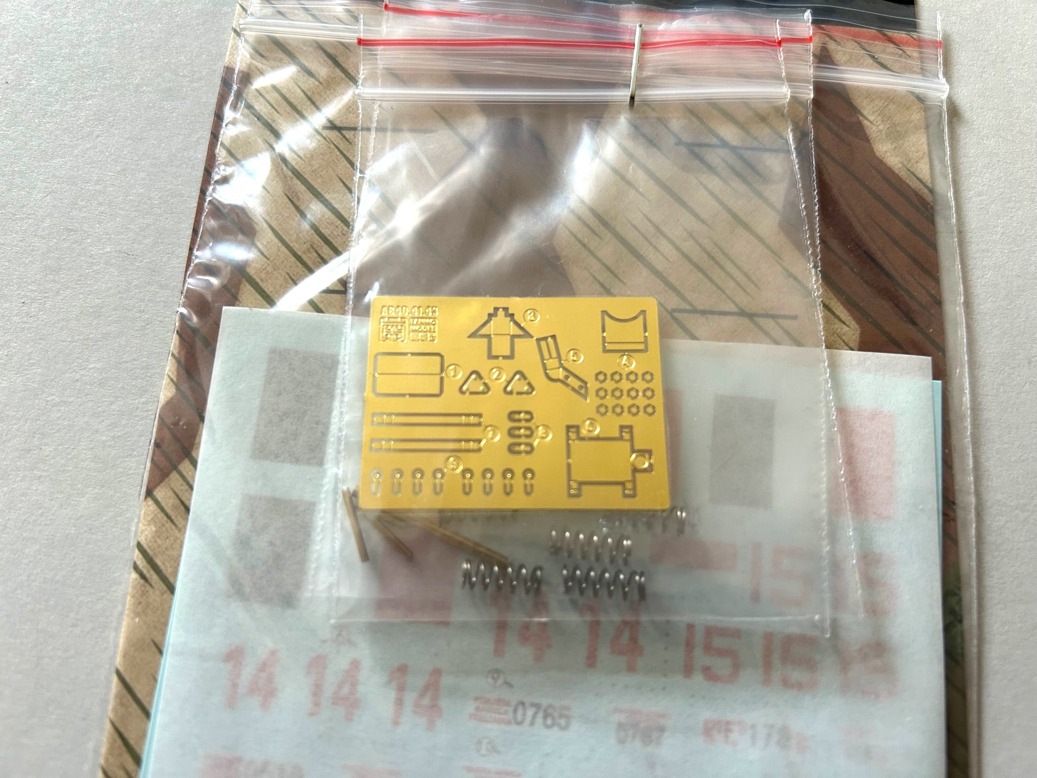 Beeindruckend finde ich die Idee, dem Bausatz neben den Ätzteilen (das kennt man ja inzwischen) auch Metallteile für die Federung und die Waffenrohre als Metallteile beizulegen. Genial! Die Abziehbilder wirken stimmig und sehr gut gedruckt.