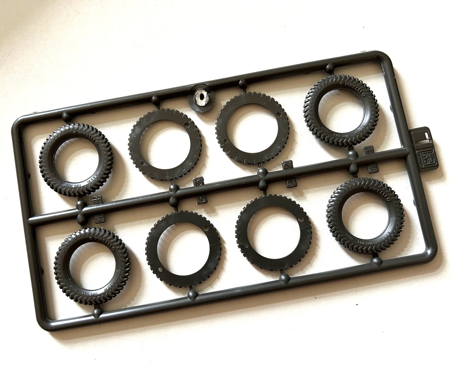 Für die Reifen findet man Plastikbauteile die im Sandwich-Verfahren zusammengebaut, ein perfektes und überzeugendes Profil ergeben. Ebenso gelungen sind die Klarsichtteile, die insbesondere für die mit separaten Klappen abdeckbaren Frontscheinwerfer sehr gut umgesetzt sind.