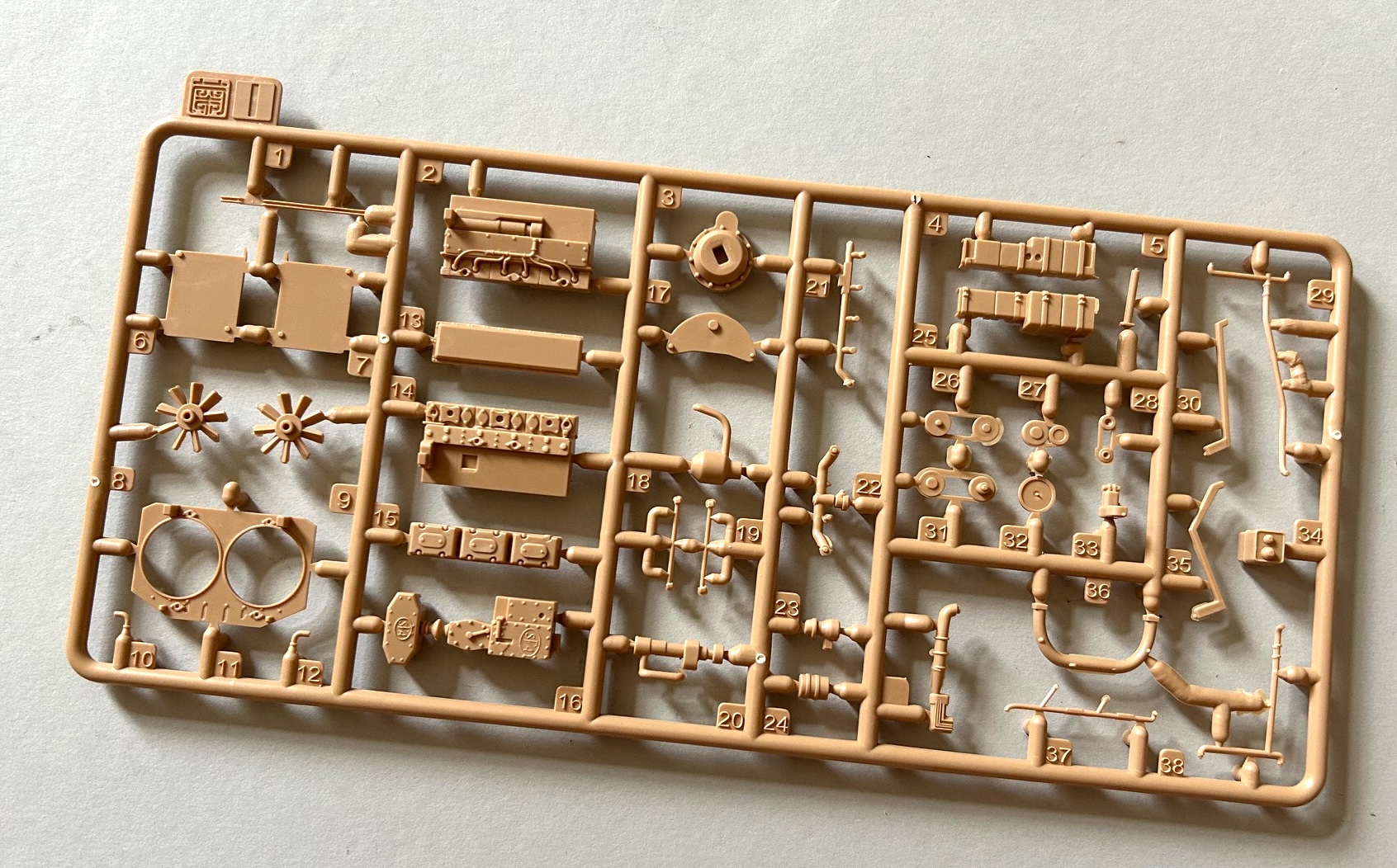 Die Qualität der Bauteile ist als sehr gut zu bezeichnen und auf den ersten Blick glaubt man – auch wegen der Farbe der Spritzlinge – einen Bausatz von Tamiya in Händen zu halten. Ob dies dann auch für die Passgenauigkeit gilt, wird sich beim Zusammenbau zeigen.