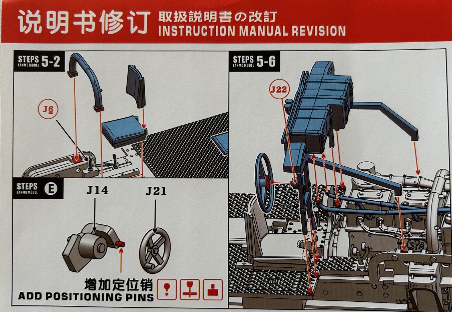 Interessanterweise liegt auch beim Bausatz der Innenausstattung ein Zusatzblatt mit Änderungshinweisen in Bezug auf den Originalbauplan bei. Dies ist ein weiterer Beleg dafür, dass man den Bausatz unter Zeitdruck veröffentlicht hat oder sich zusätzliche Kosten für eine Neuerstellung der Bauanleitungen ersparen wollte.